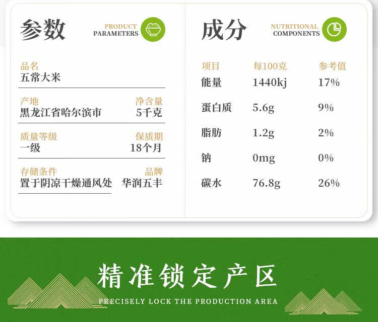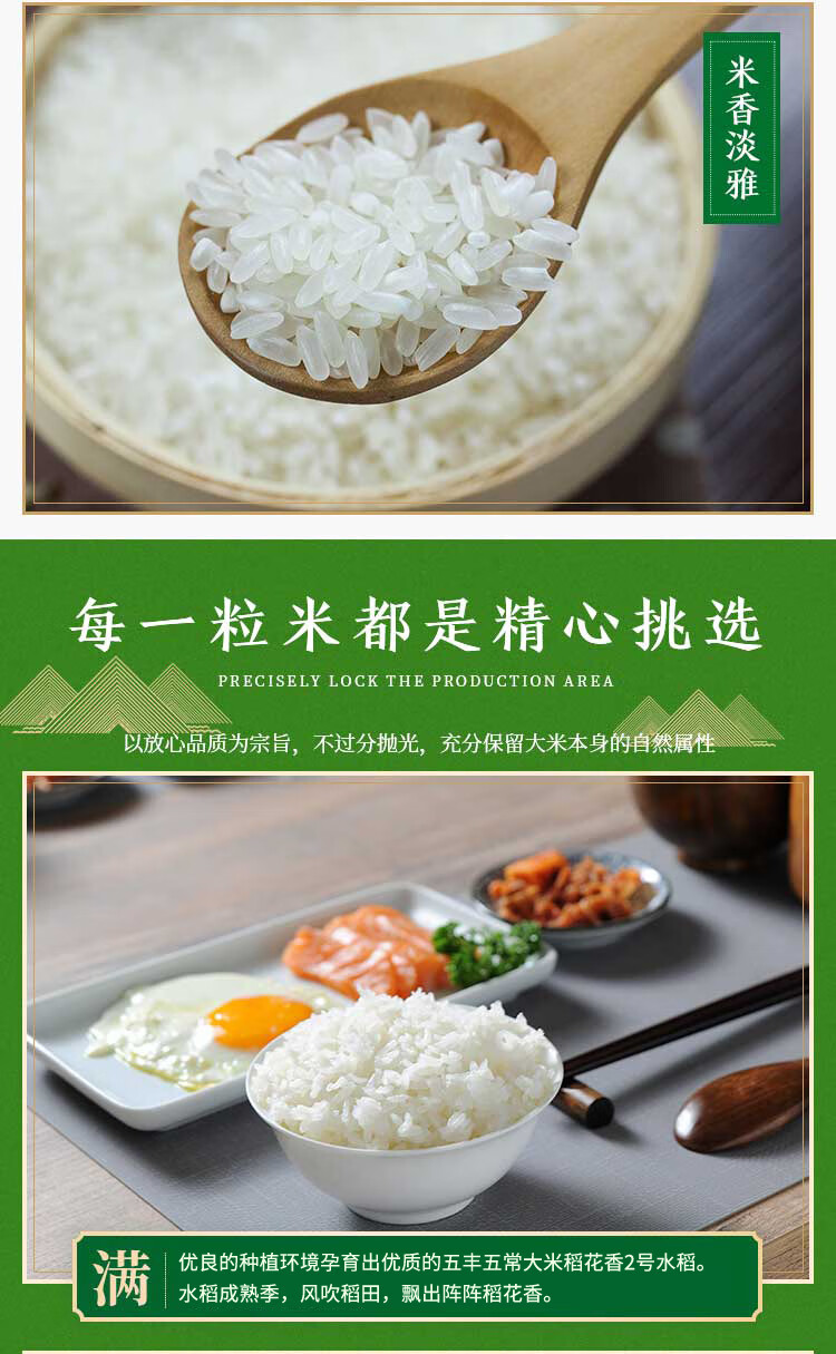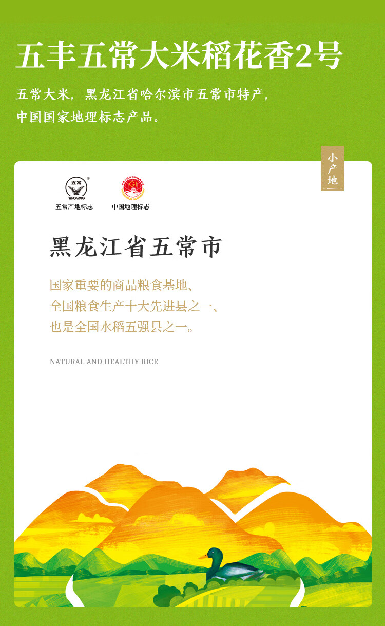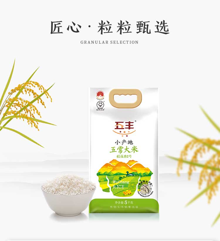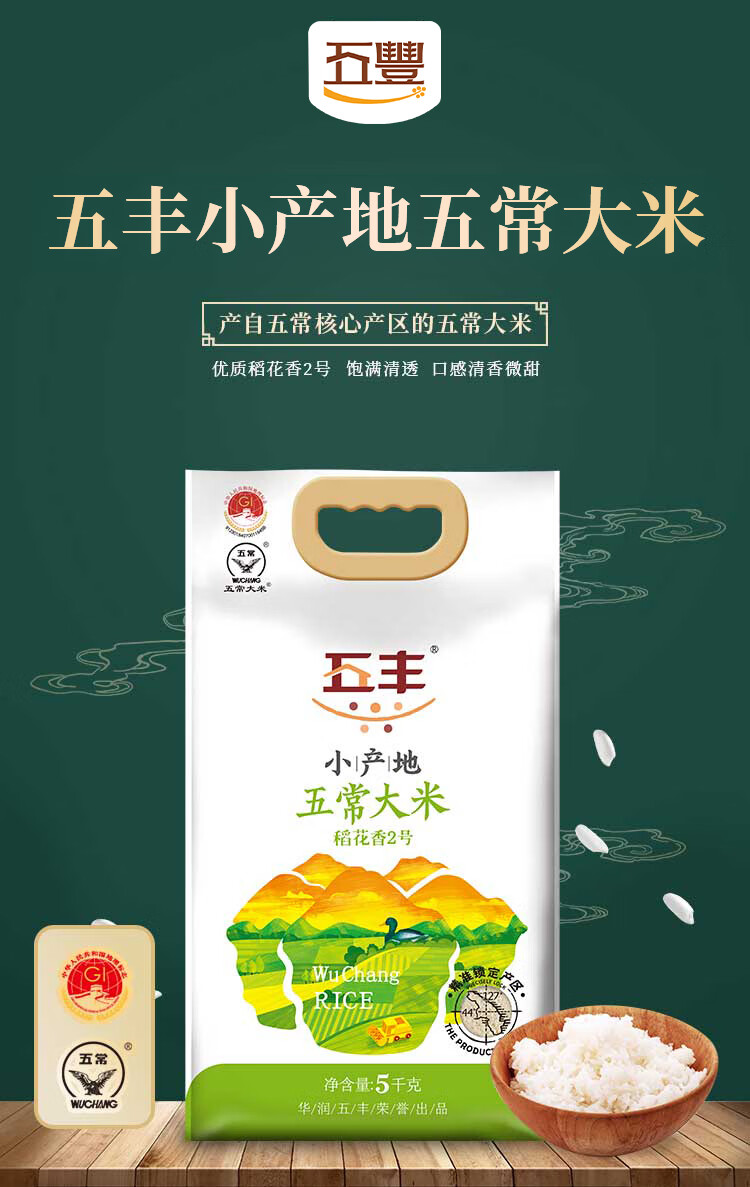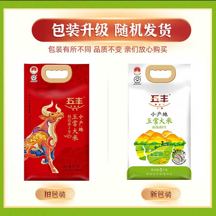 商品名称:五丰 五常大米稻花香2号 双层包装东北大米5kg 单位:袋