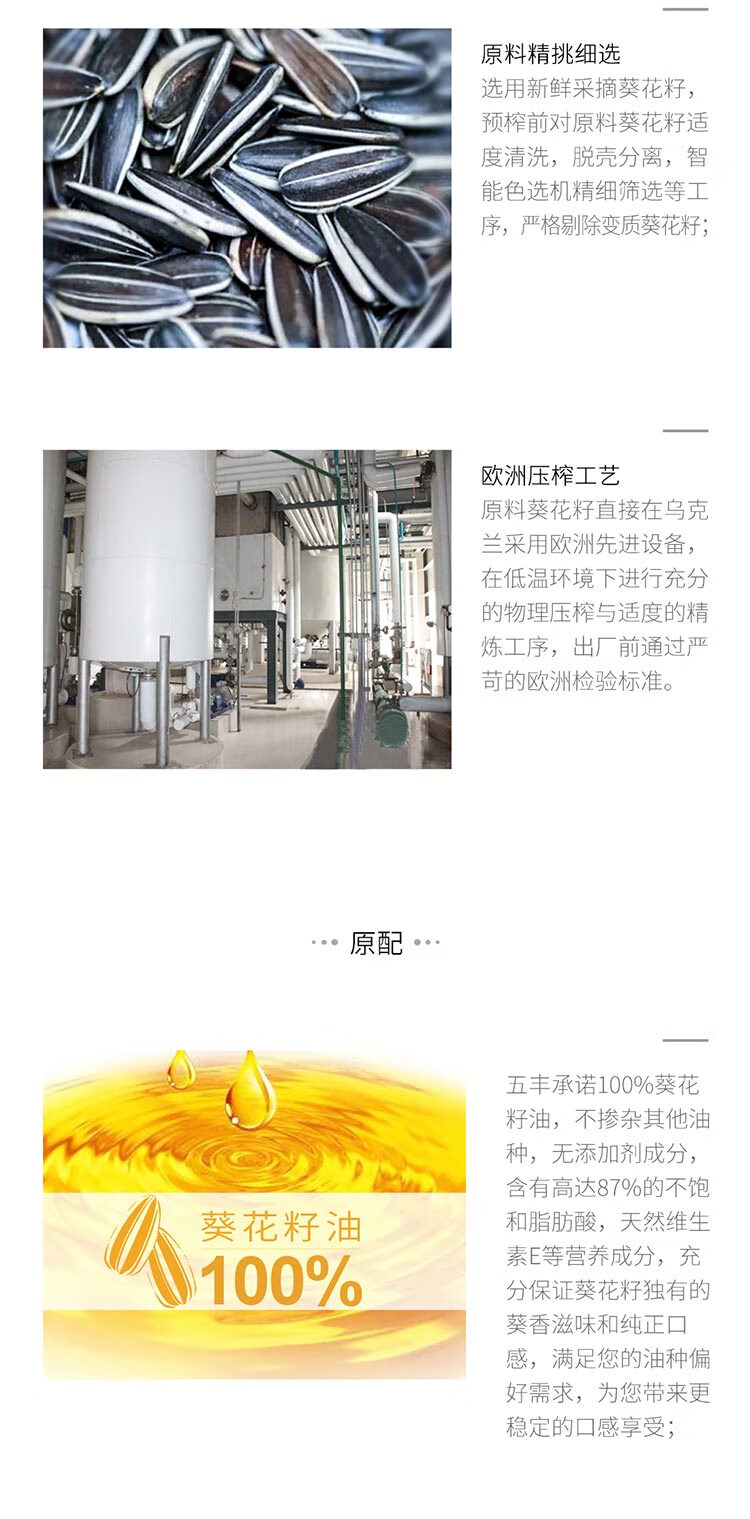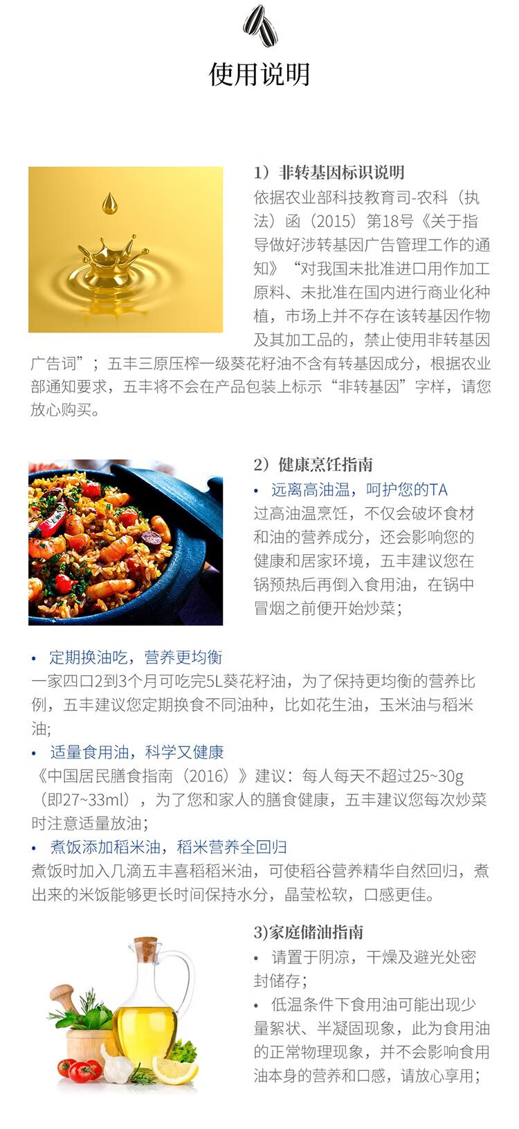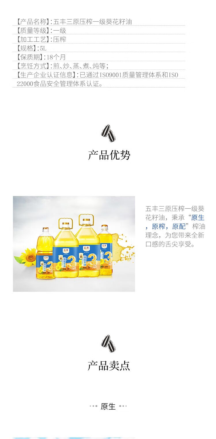商品名称:五丰三原 压榨 一级葵花籽油5L