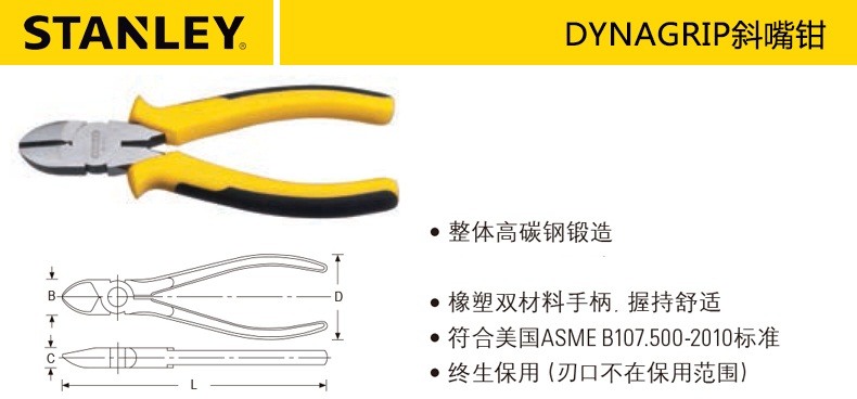 商品名称:STANLEY/史丹利 DYNAGRIP斜嘴偏口钳偏嘴钳6寸钳子 STHT84027-8-23