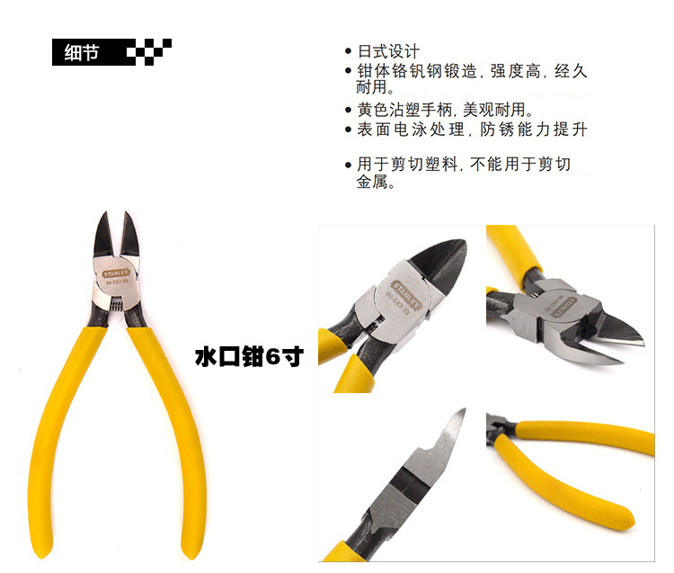 商品名称:STANLEY/史丹利 4件套钳子组套 钢丝钳尖嘴钳斜嘴钳水口钳 TK912-23C