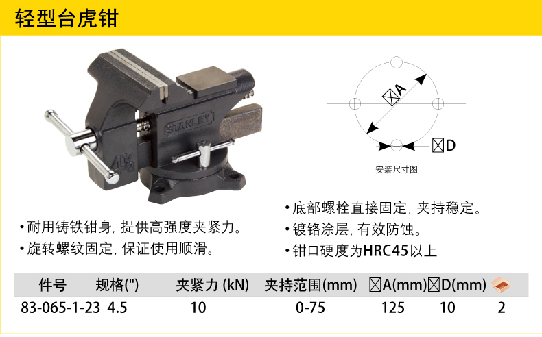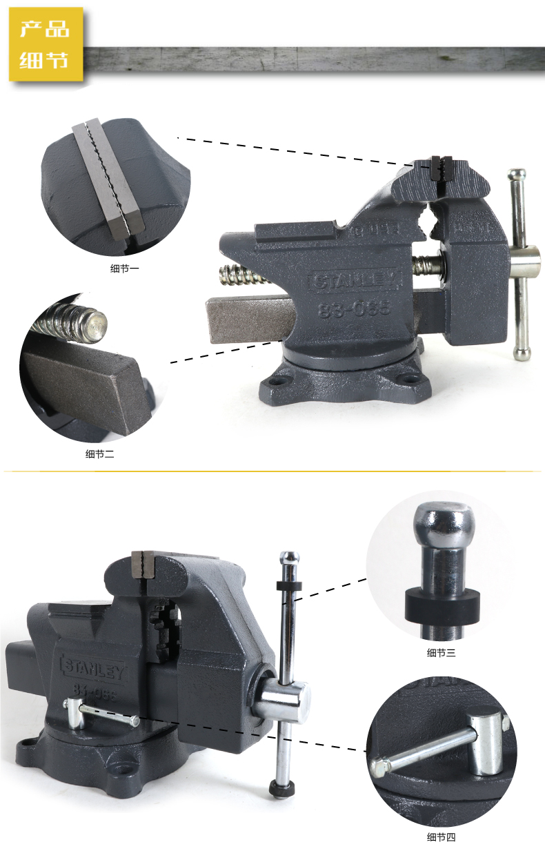 商品名称:STANLEY/史丹利 轻型台虎钳 带砧台铸铁桌虎钳小台钳 83-065-1-23