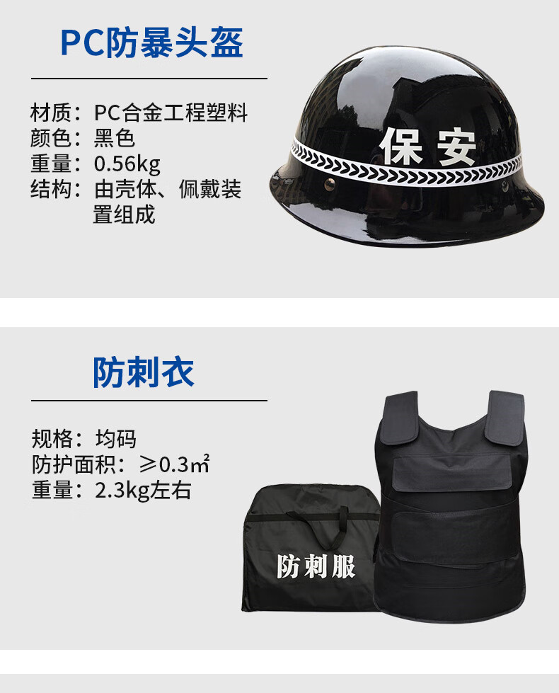 商品名称:丛林狐 防暴盾牌钢叉防刺服防割手套保安头盔防暴棍学校幼儿园保安防器材防爆套装(检查六件套装)
