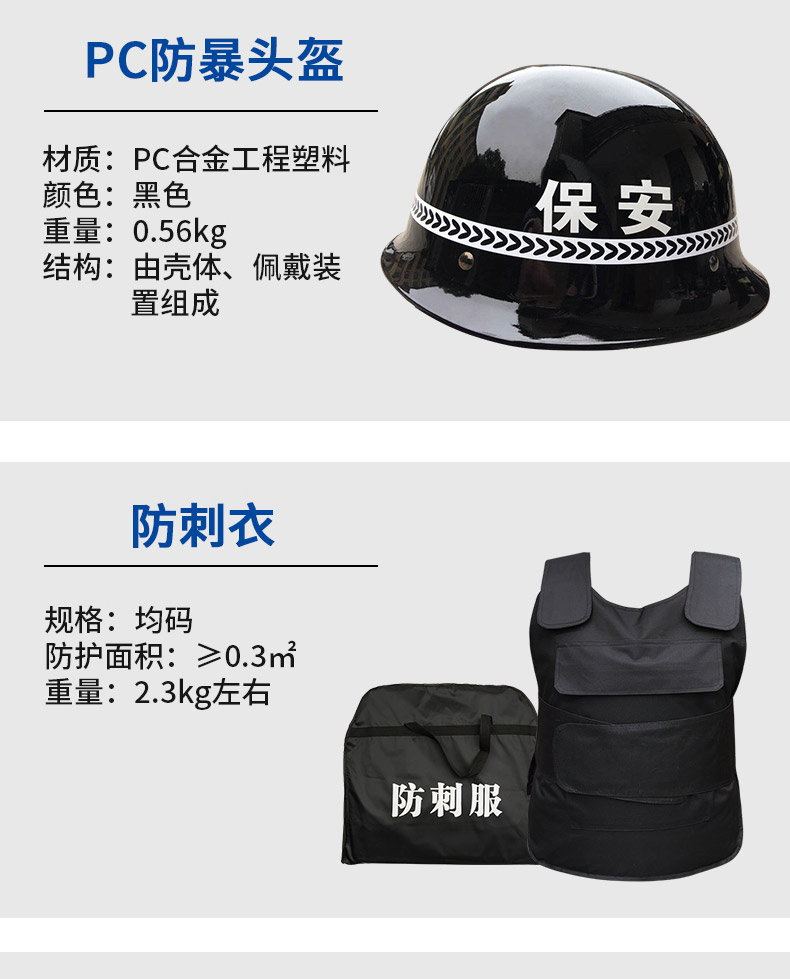 商品名称:丛林狐 防暴盾牌钢叉防刺服防割手套保安头盔防暴棍学校幼儿园保安防器材防爆套装(实用五件套装)