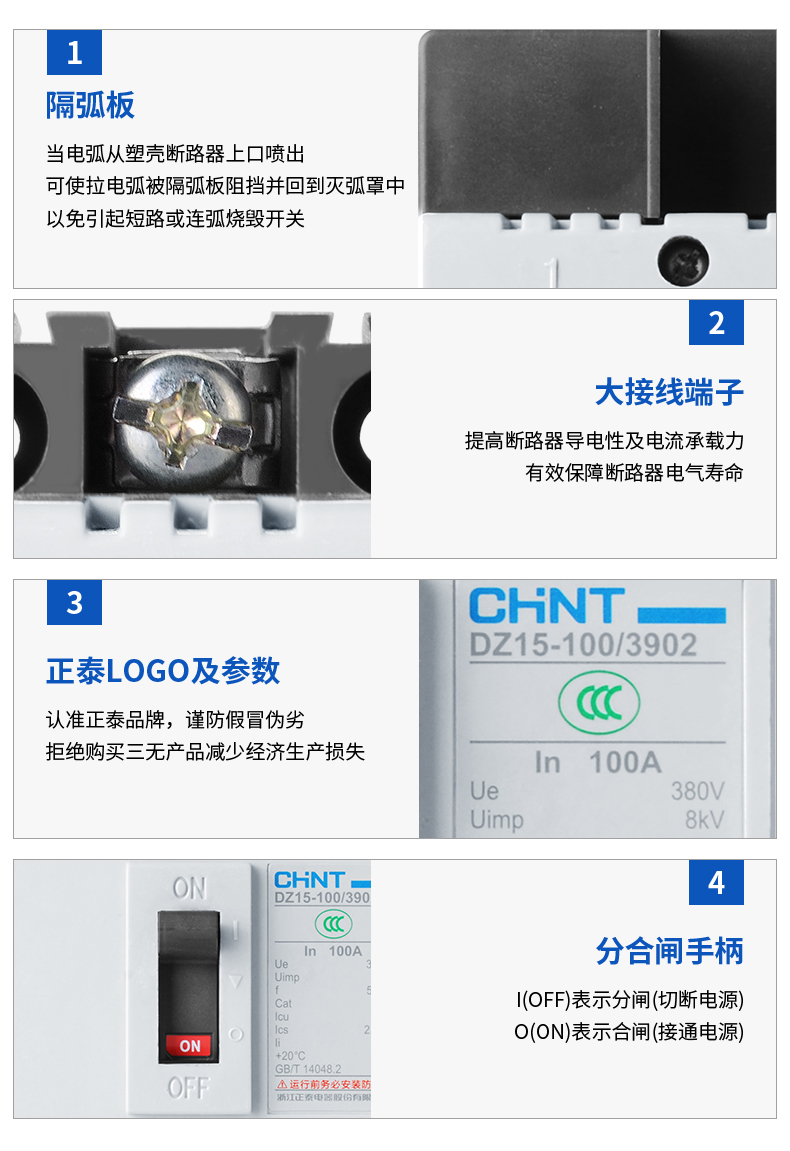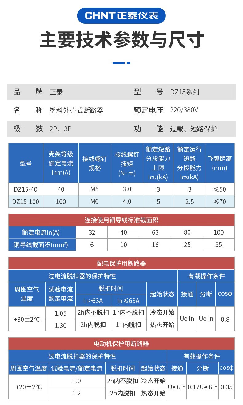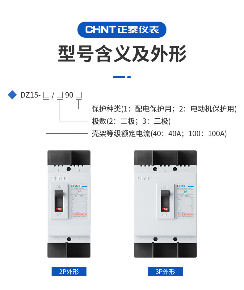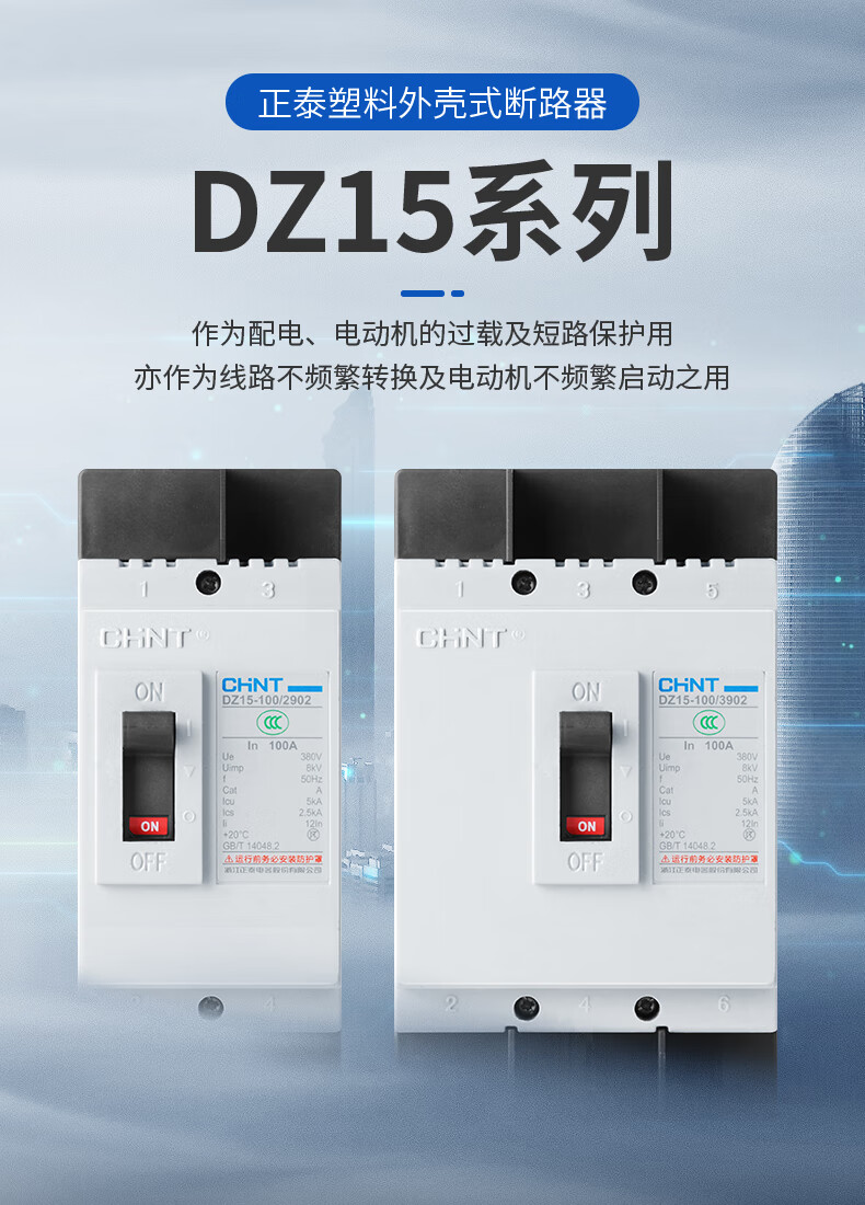商品名称:正泰塑壳式断路器空气开关大功率空开保护器 DZ15 2p 100A
