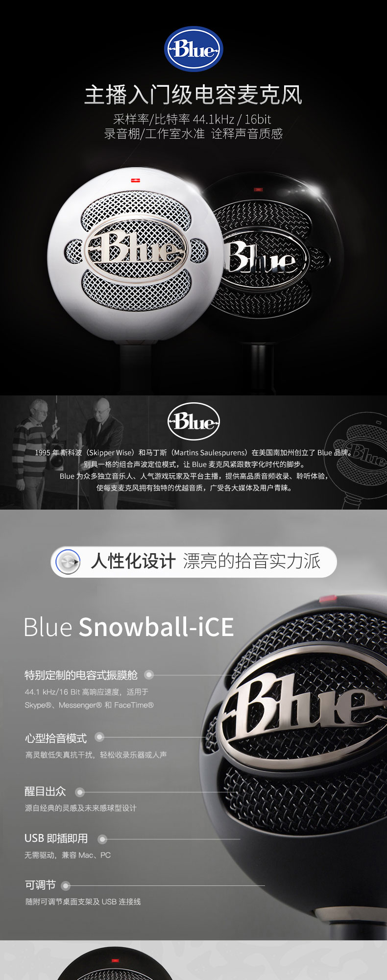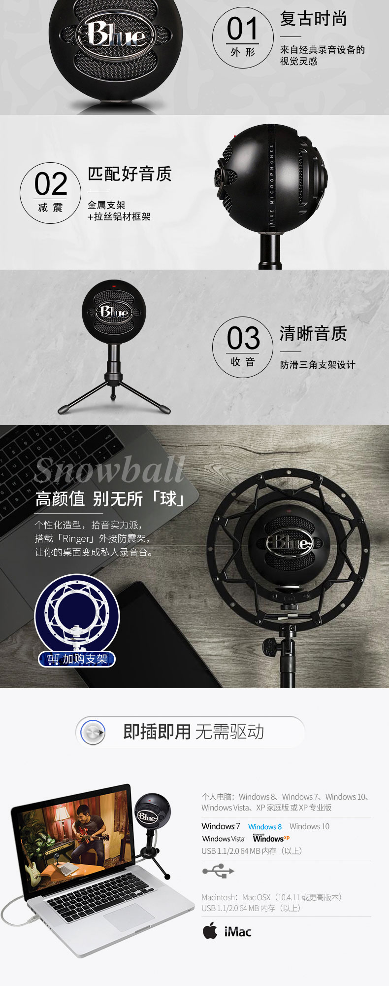 商品名称:罗技(Logitech) Blue Snowball小雪球USB电容麦克风主播直播K歌喊麦录音话筒 Blue Snowball iCE