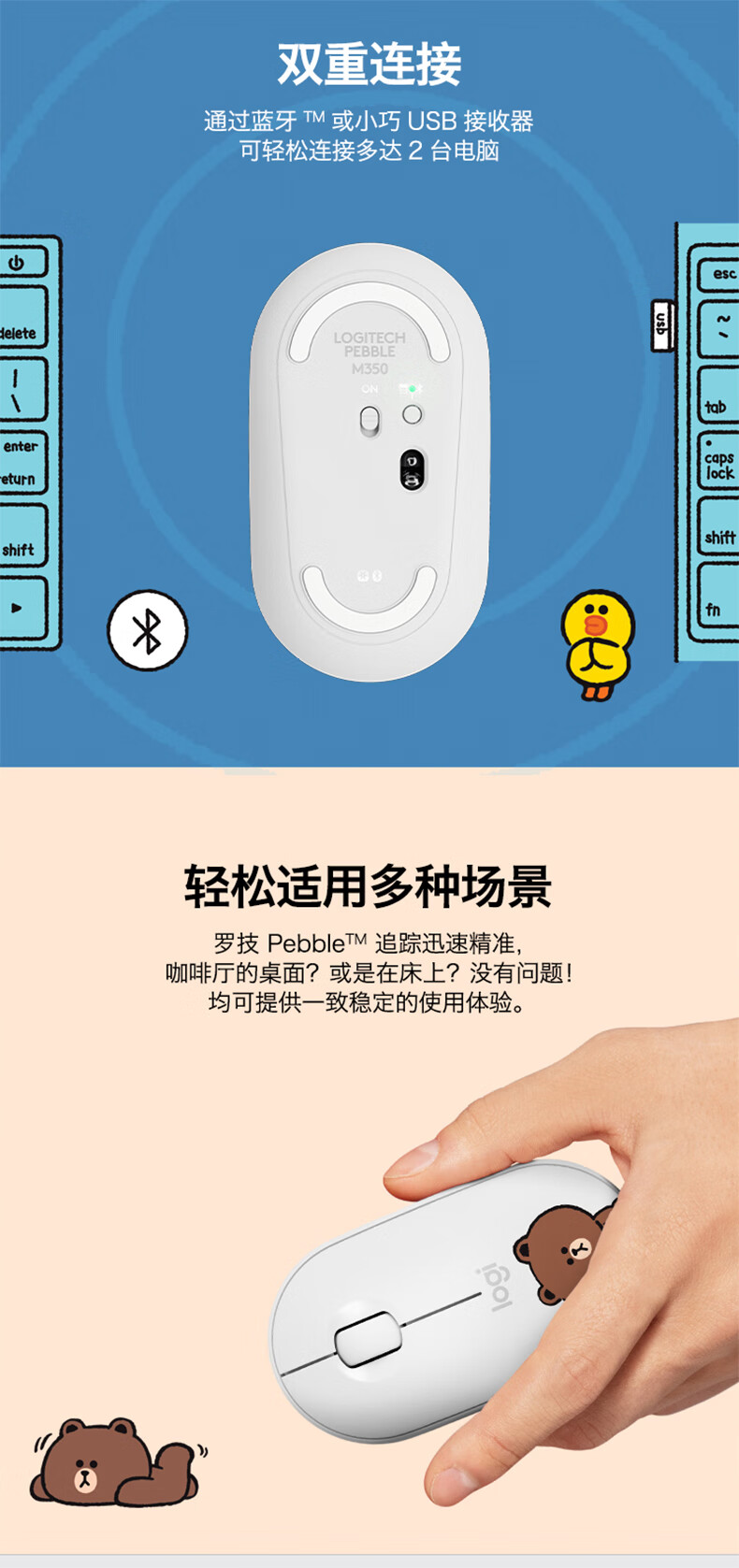 罗技(Logitech) Pebble鹅卵石轻薄型轻音办公鼠标 蓝牙无线双模 时尚便携可爱 少女馆 pebble星幕紫 单位;个