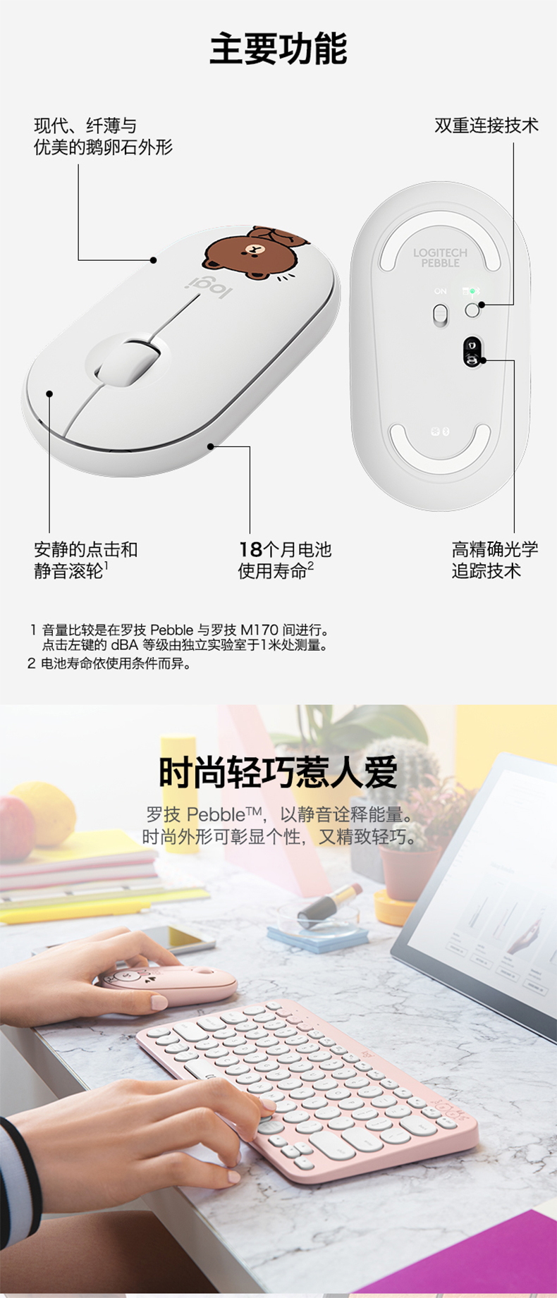 商品名称:罗技(Logitech) Pebble鹅卵石轻薄型轻音办公鼠标 蓝牙无线双模 时尚便携可爱 少女馆 pebble星幕紫 单位;个