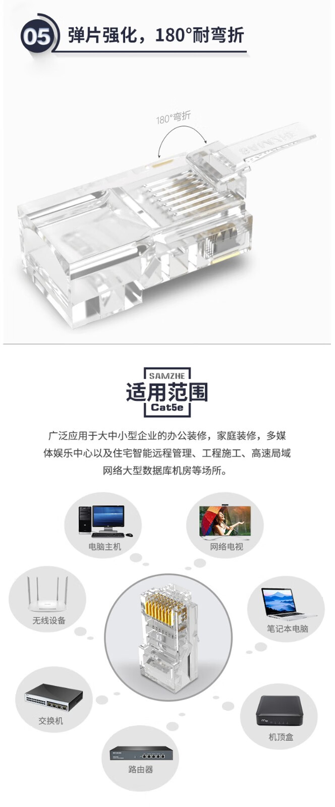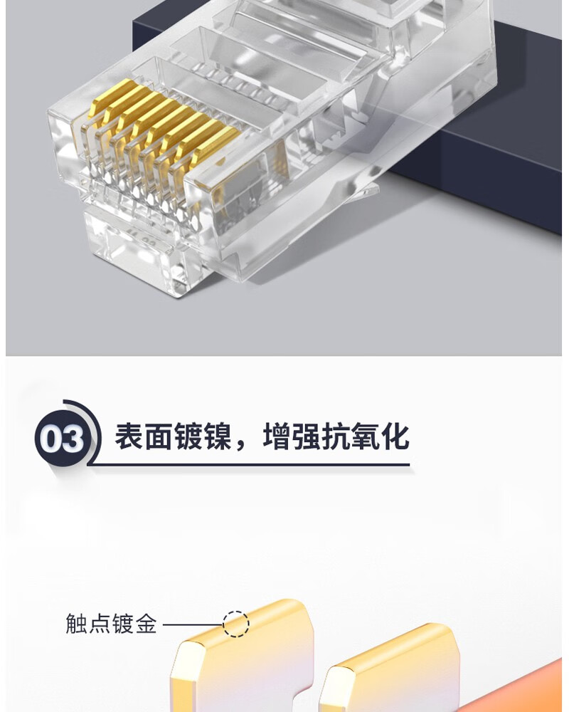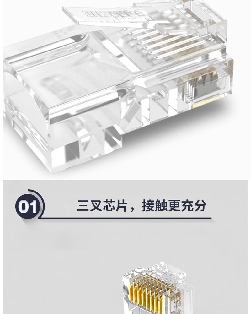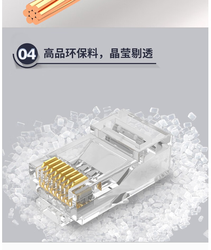 商品名称:邦耀 超五类水晶头非屏蔽网络水晶头 AP-S50 100个装