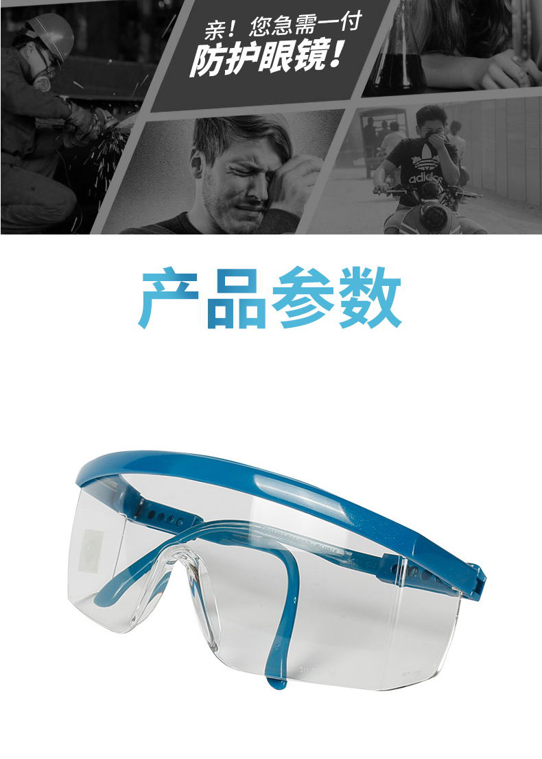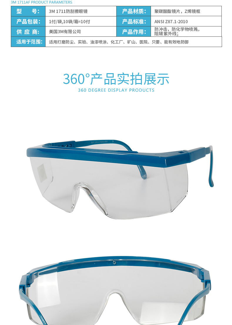 商品名称:3M 1711防冲击防风沙防紫外线护目眼镜骑行劳保护目镜镜腿长度可调