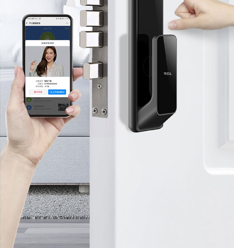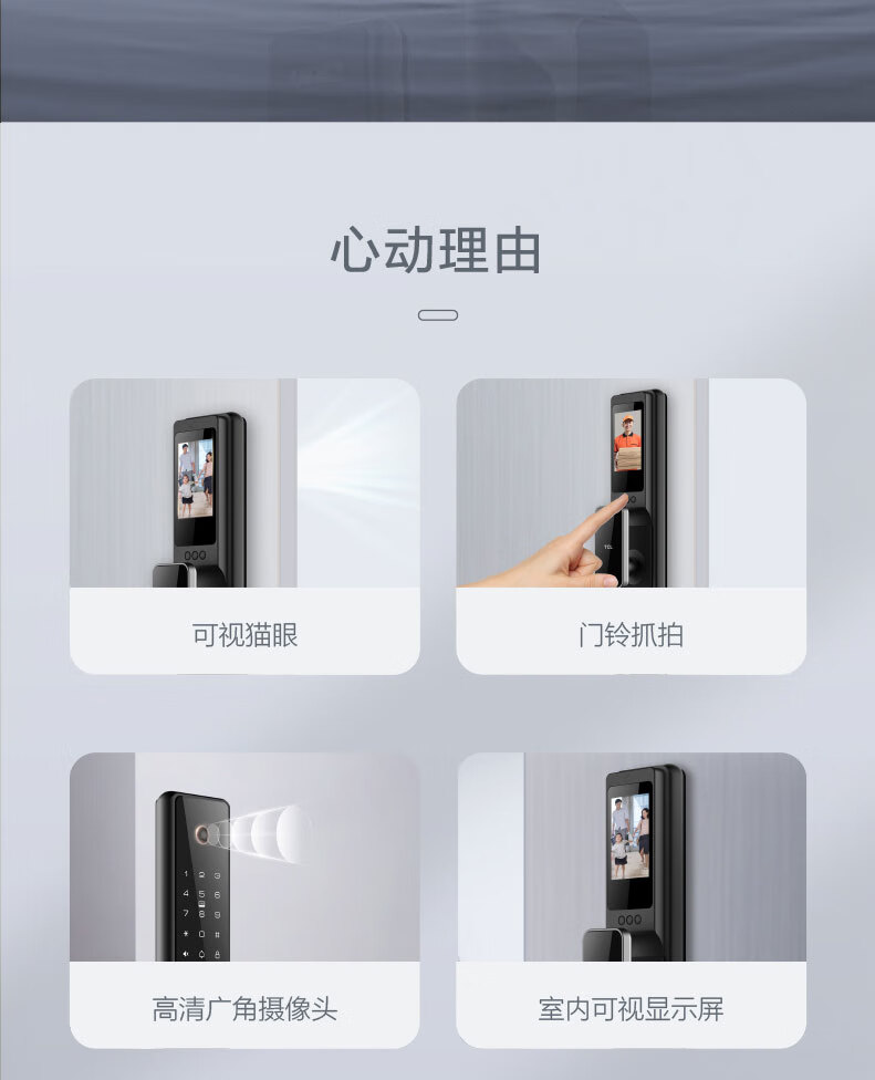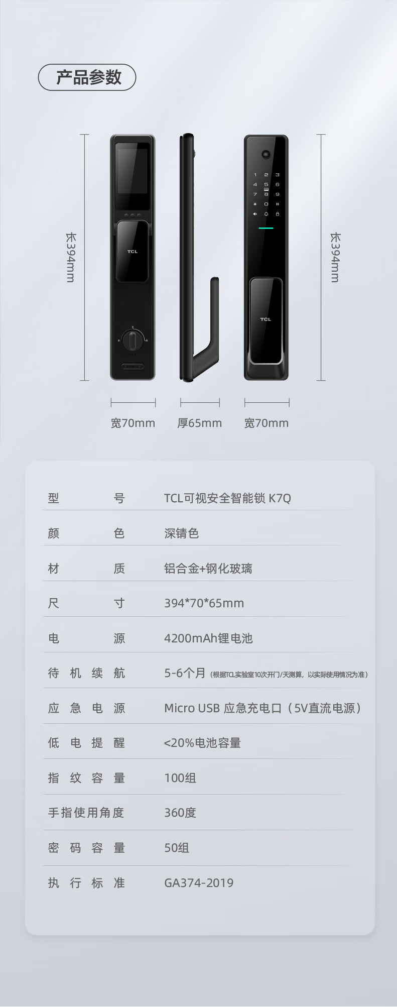 商品名称:TCL指纹锁智能锁猫眼可视带屏幕密码锁防盗门智能门锁全自动款推拉锁家用电子锁 店铺-猫眼可视-Q9 大屏猫眼-K7Q-配送
