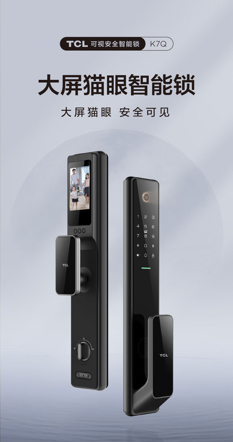 TCL指纹锁智能锁猫眼可视带屏幕密码锁防盗门智能门锁全自动款推拉锁家用电子锁 店铺-猫眼可视-Q9 大屏猫眼-K7Q-配送