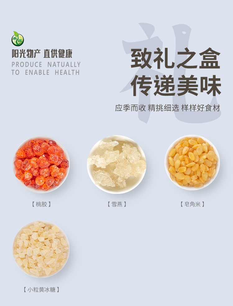 商品名称:禾煜(HEYU) 杂粮干货礼盒 不熏不掺不染 五谷杂粮礼盒 粥料礼盒 桃胶雪燕皂角米礼盒480g