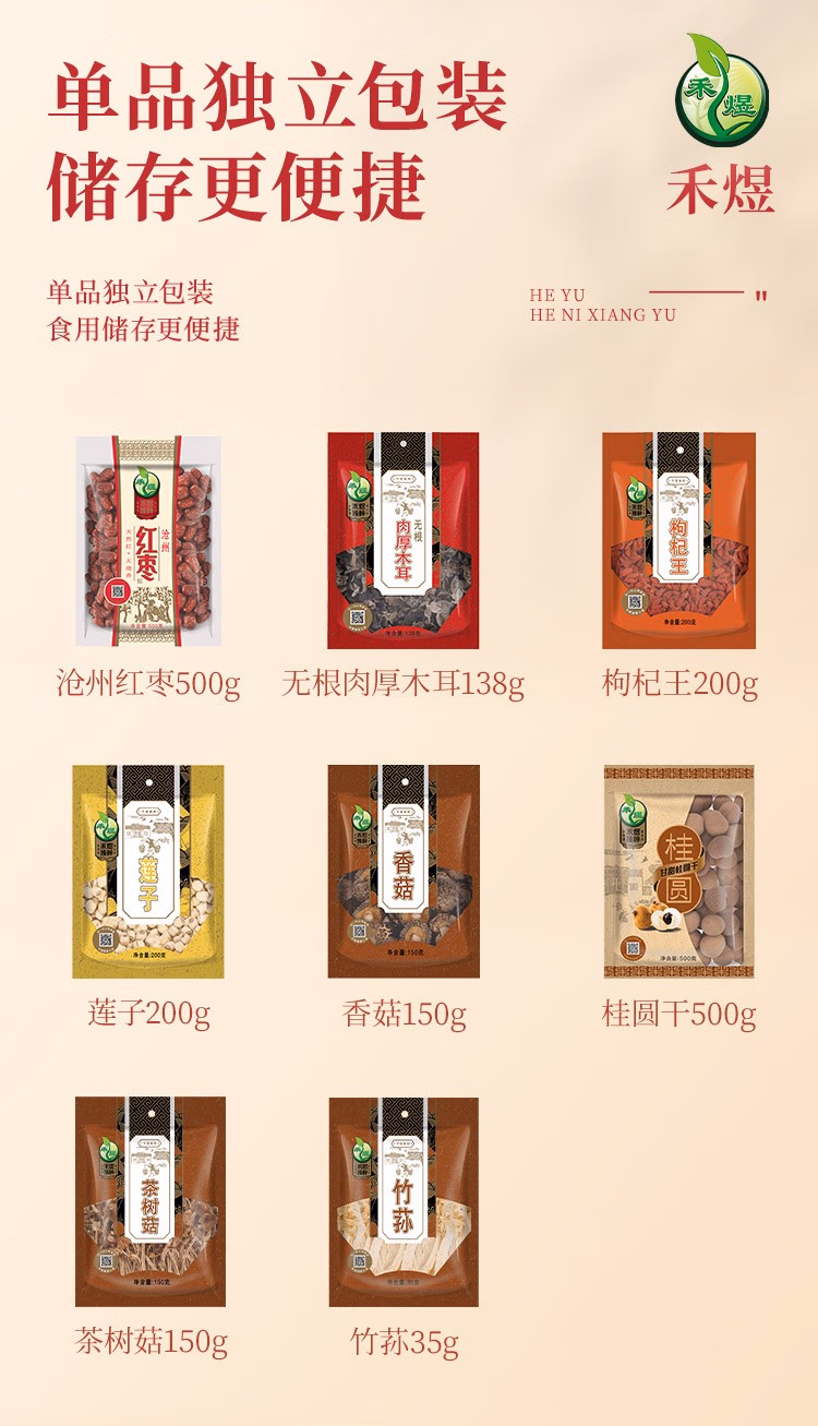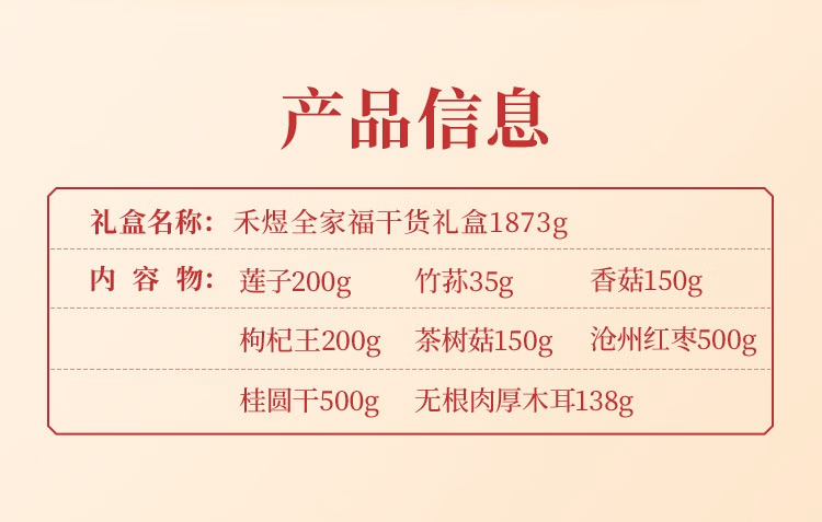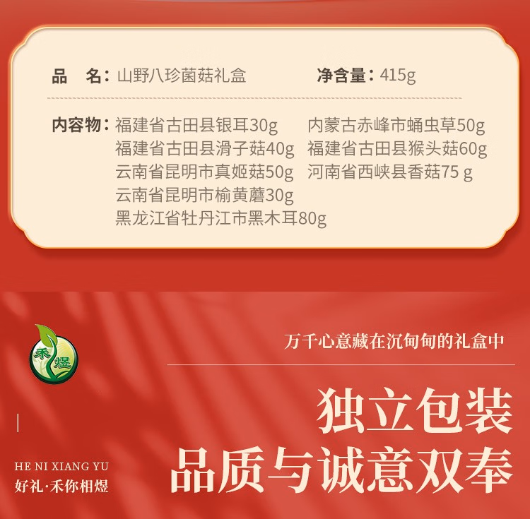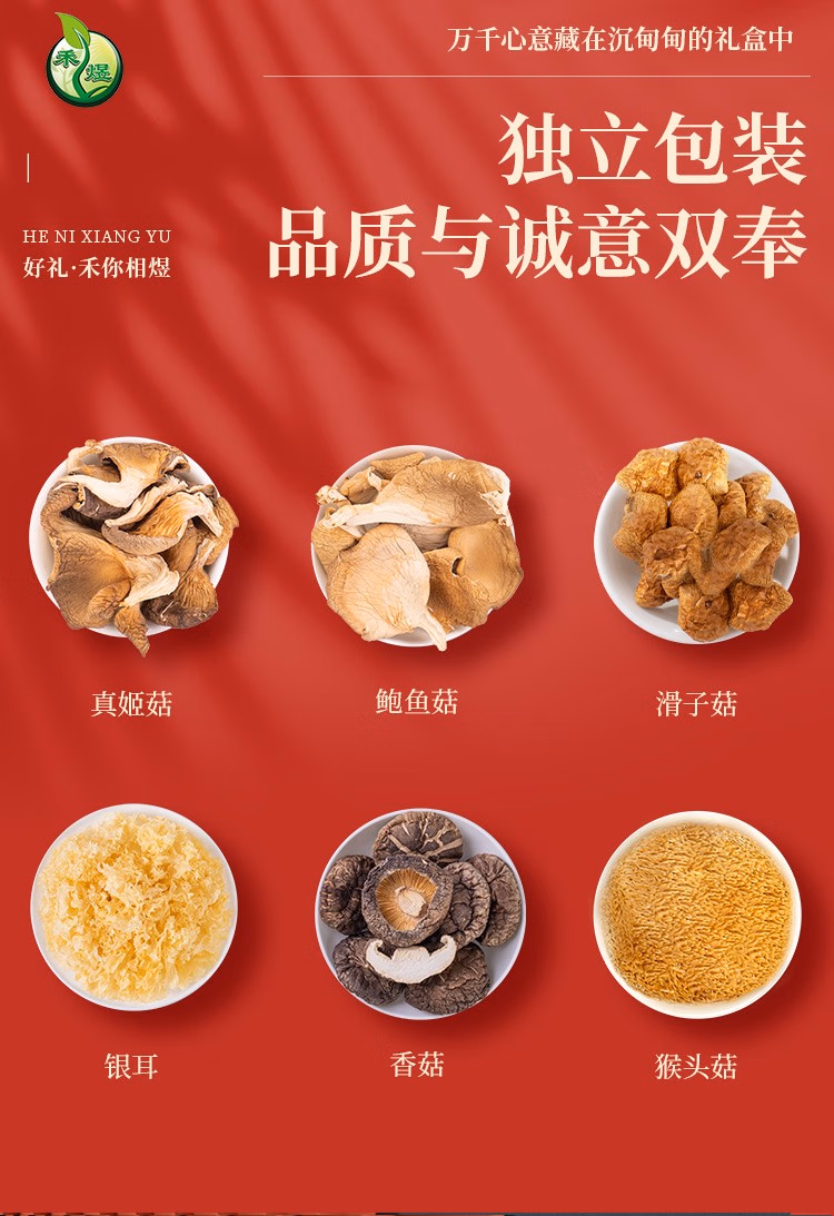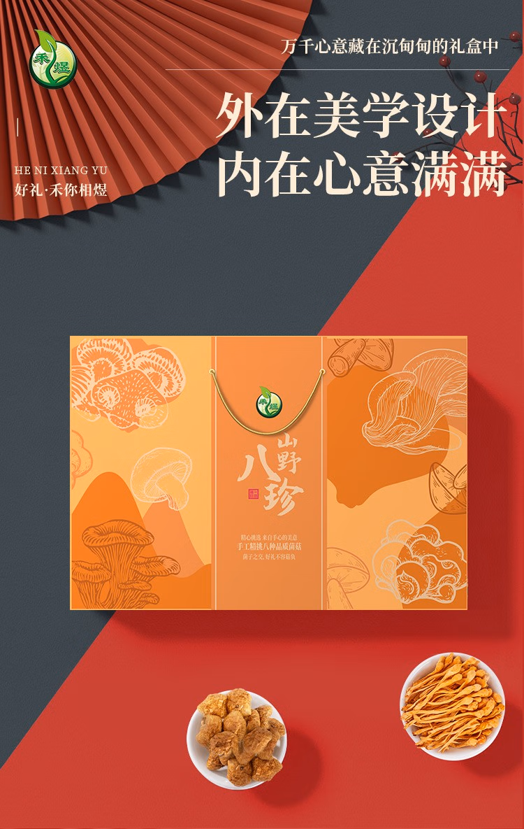 商品名称:禾煜(HEYU) 山珍干货礼盒干菌 营养粥礼盒南北干货大礼包企业团购礼品菌菇送礼员工福利购礼盒 福聚满堂1215g 单位:盒