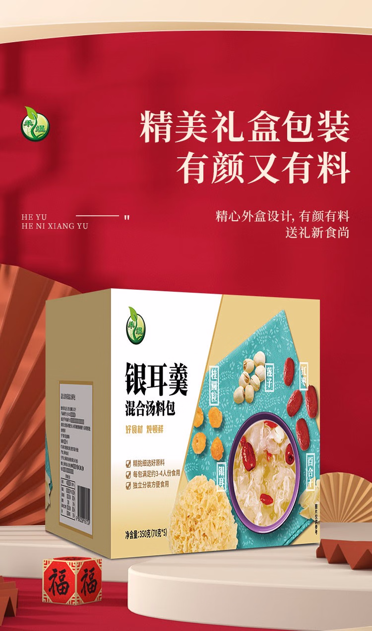 禾煜 南北干货礼盒 菌菇特产礼盒 香菇 木耳 五谷杂粮礼盒 娇颜羹桃胶雪燕皂角米礼盒480g