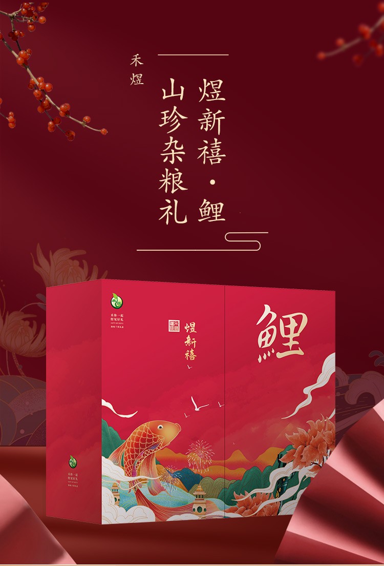 禾煜(HEYU) 南北干货礼盒 菌菇特产礼盒 香菇 木耳 五谷杂粮礼盒公司团购定制年货春节送礼 煜新禧-鲤-杂粮礼盒1820g