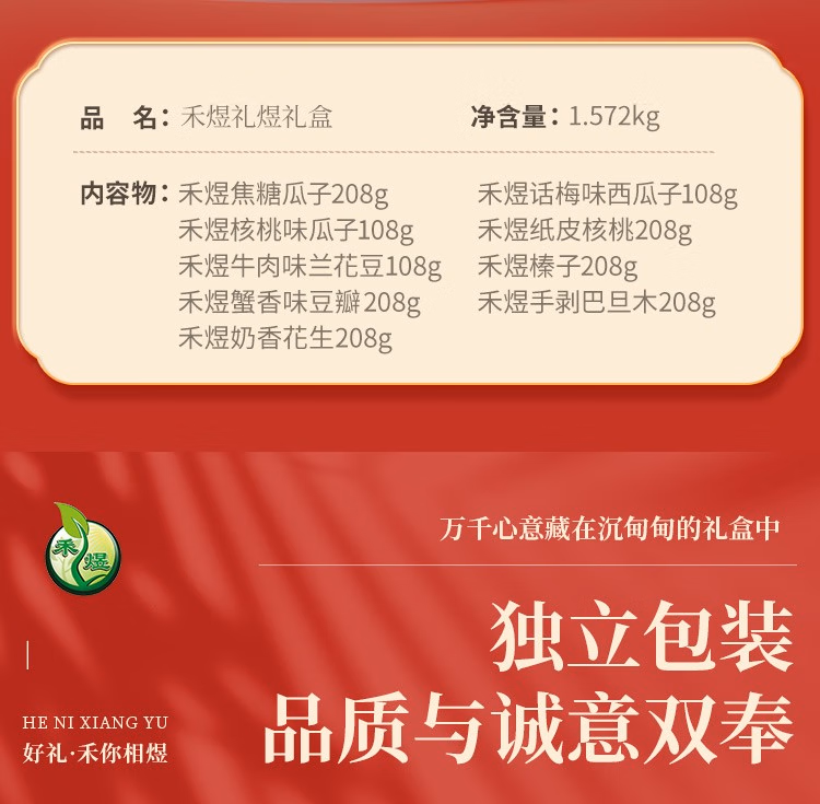 商品名称:禾煜(HEYU) 山珍干货礼盒干菌营养粥礼盒南北干货大礼包企业团购礼品菌菇送礼员工福利购炒货礼盒 炒货礼盒1572g
