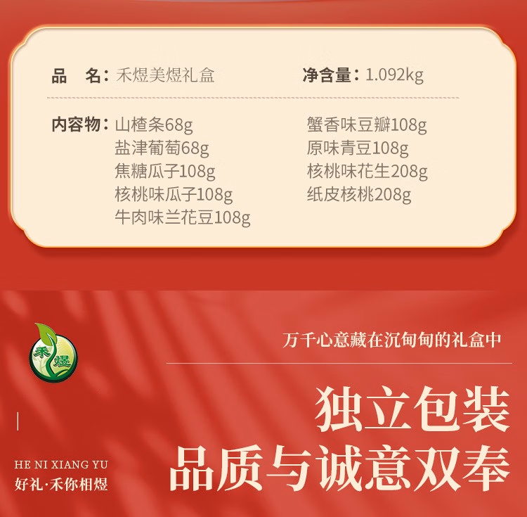 禾煜(HEYU) 山珍干货礼盒干菌营养粥礼盒南北干货大礼包企业团购礼品菌菇送礼员工福利购炒货礼盒 炒货礼盒1572g