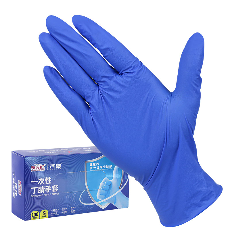 商品名称:东方红 一次性丁腈手套加厚防护食品清洁检查厨房工作劳保 100只/盒 S码(S—L码可选,下单请备注) 单位:盒 3盒起订