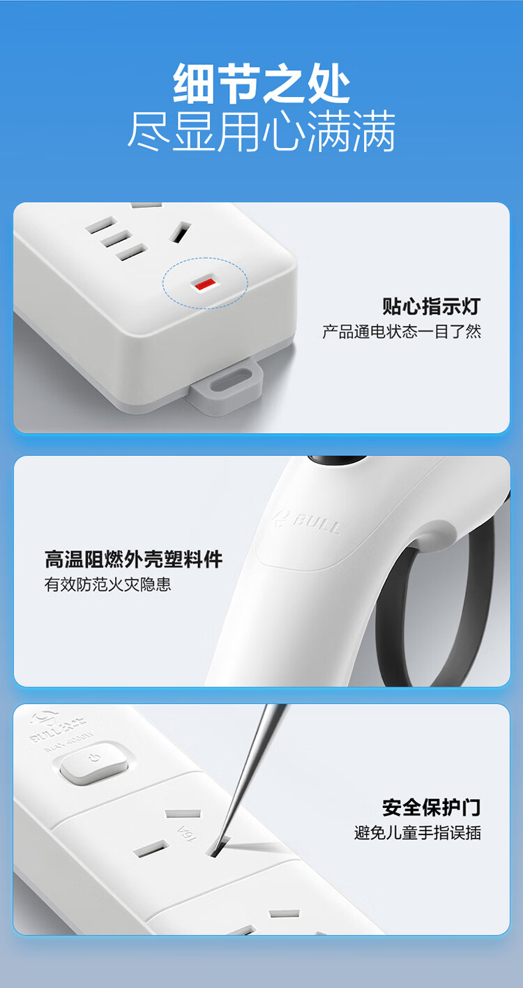 公牛(BULL)电动汽车放电枪插排座枪 支持比亚迪小鹏理想新能源充电枪 16A/白色/3米