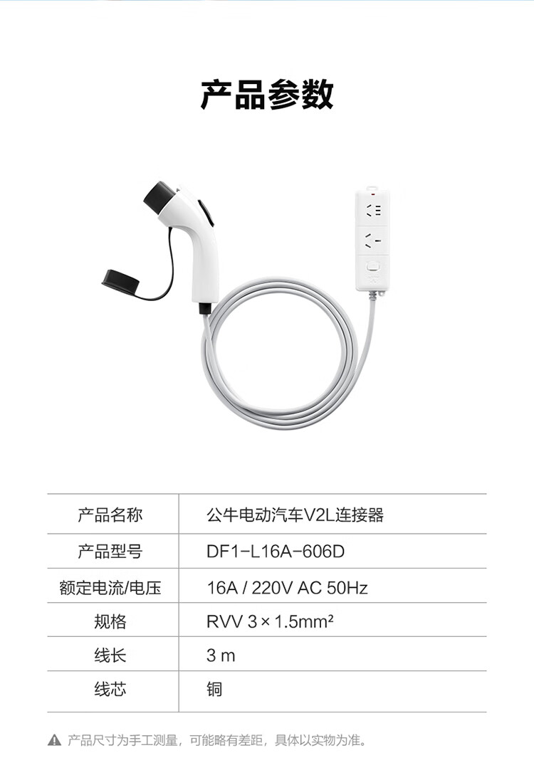 商品名称:公牛(BULL)电动汽车放电枪插排座枪 支持比亚迪小鹏理想新能源充电枪 16A/白色/3米