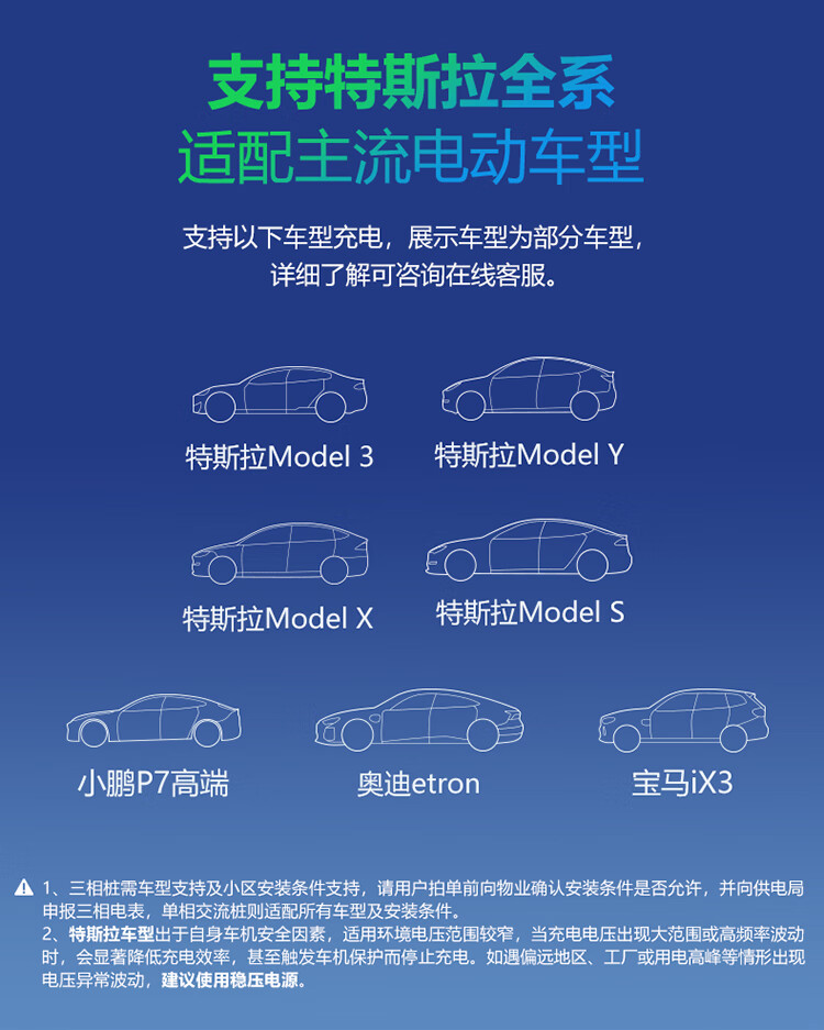 商品名称:公牛新能源汽车交流充电桩380V/11kw三相电适用特斯拉model3YSX 风尚款(无安装无立柱)