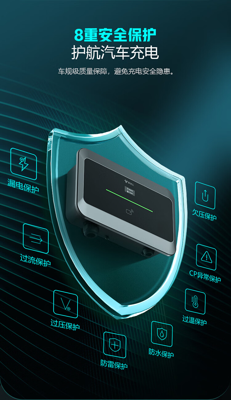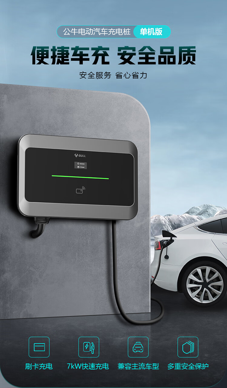 公牛新能源汽车交流充电桩【D3-A32CA】32A/220V/7KW适用比亚迪理想广汽蔚来小鹏吉利上汽 标准款单机版