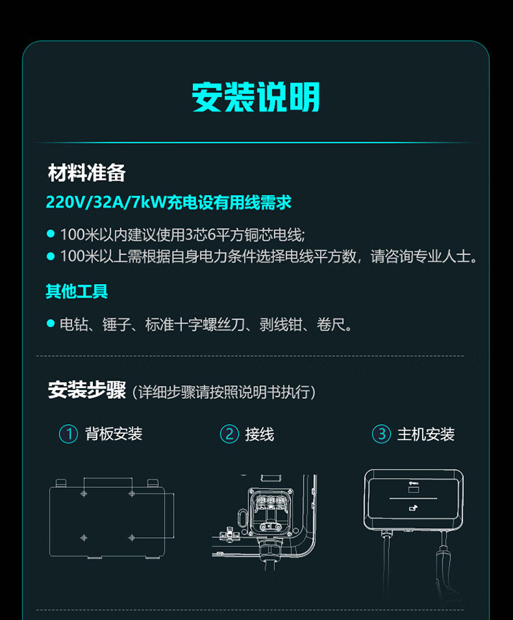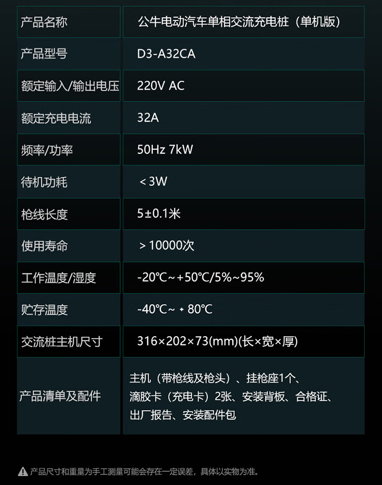 商品名称:公牛新能源汽车交流充电桩【D3-A32CA】32A/220V/7KW适用比亚迪理想广汽蔚来小鹏吉利上汽 标准款单机版