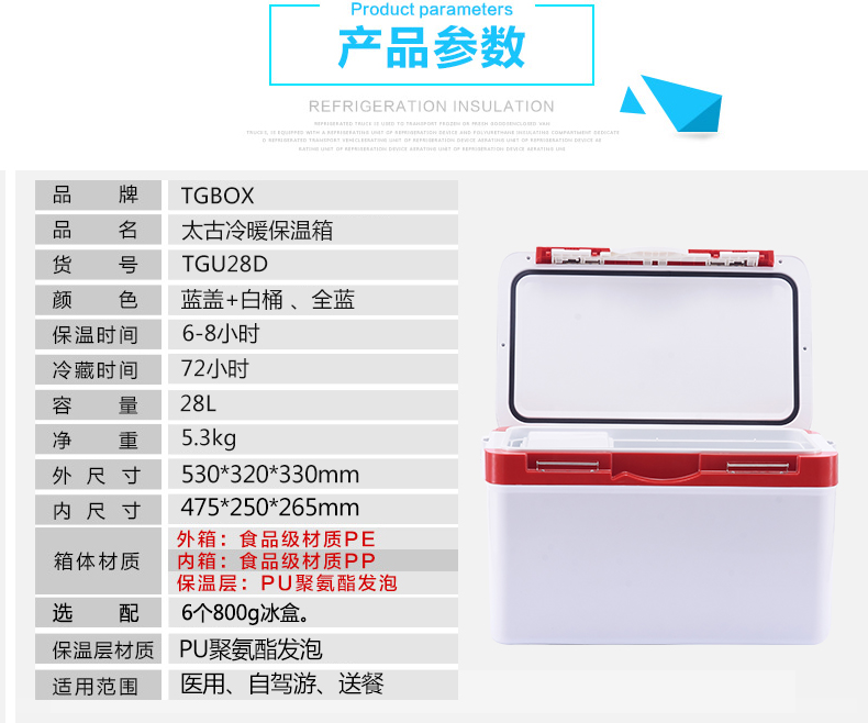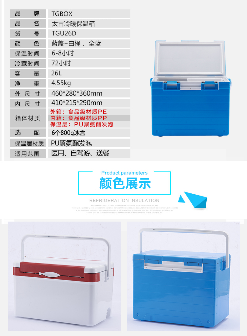 商品名称:TGBOX/太古冷链 26L车载保温箱 冷藏箱 医用药品冷链运输箱 TGU26