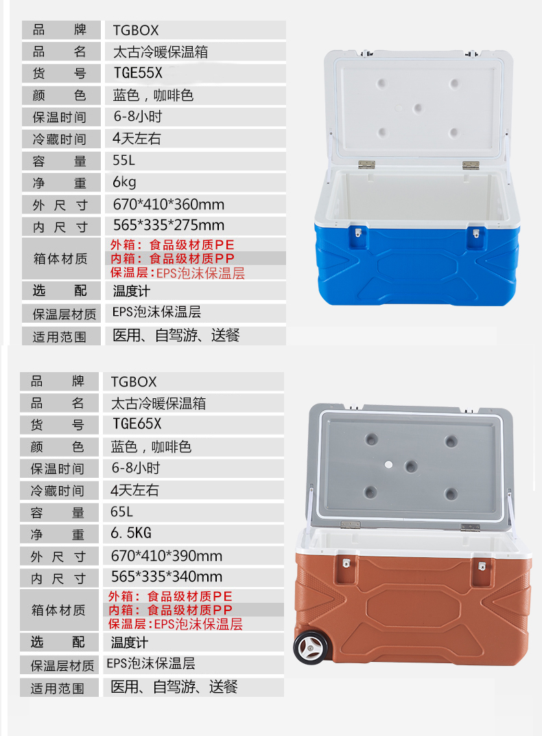 商品名称:TGBOX/太古冷链 保温箱55L轻便款海钓箱冷藏箱 TGE55X