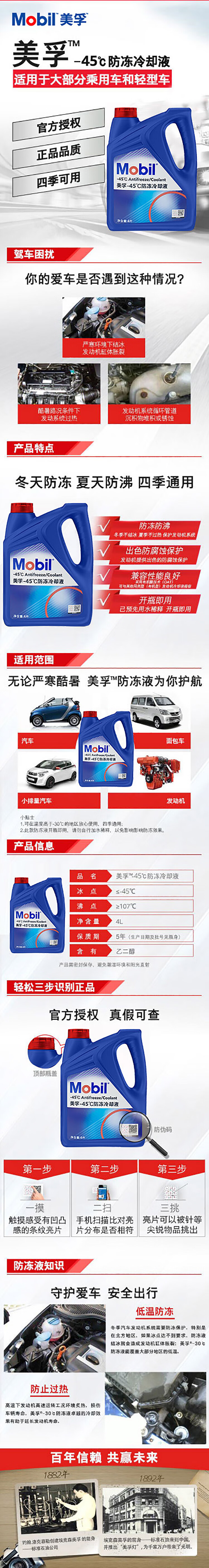 商品名称:美孚(Mobil)防冻冷却液-45℃ 4L 汽车保养 单位:瓶