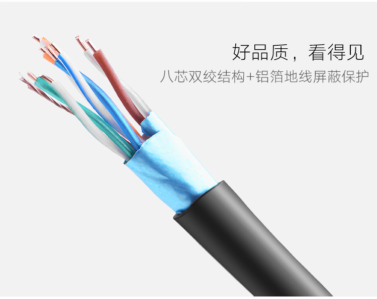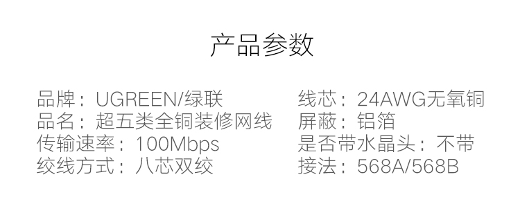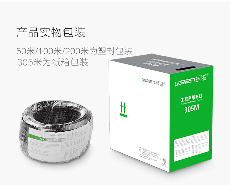 商品名称:绿联 超五类网线 百兆纯铜屏蔽室外监控宽带网线300米箱