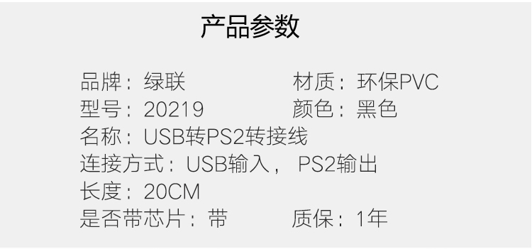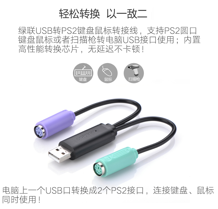 商品名称:绿联 PS2转USB转接线鼠标键盘圆口转USB接口usb转ps2转接头转换器