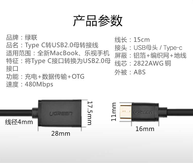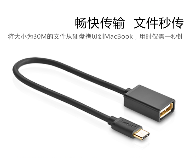 商品名称:绿联 USB3.1 type-c转USB母数据线米4C乐1手机OTG连接线转接头苹果雷电3延长线接口高速文件传输充电U盘追剧 US154