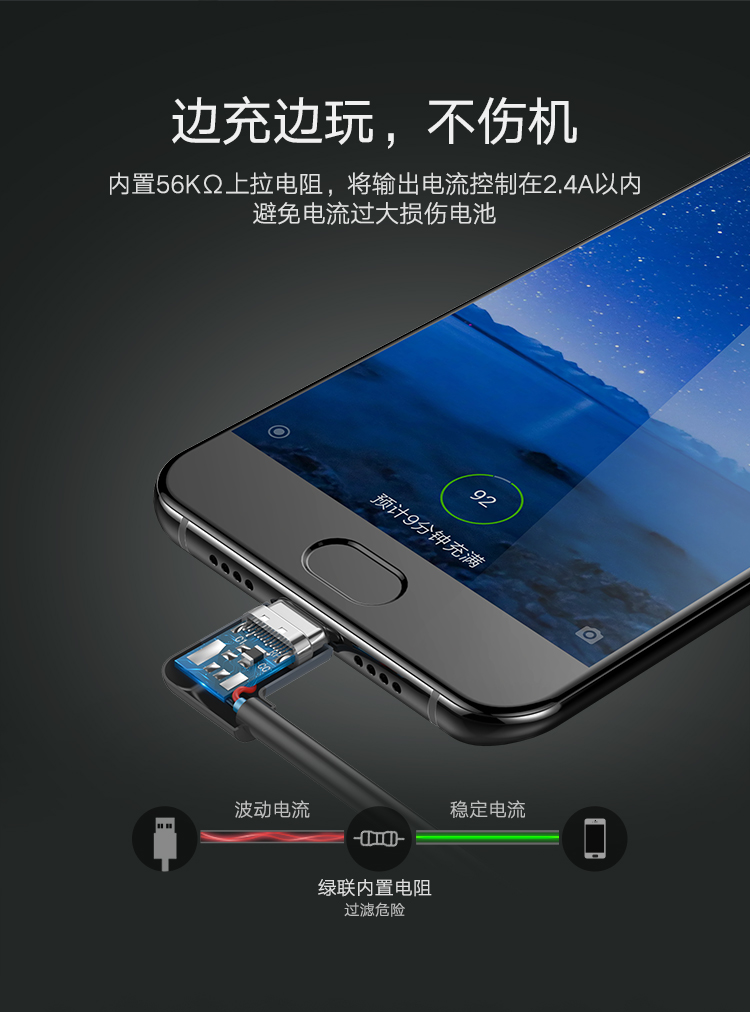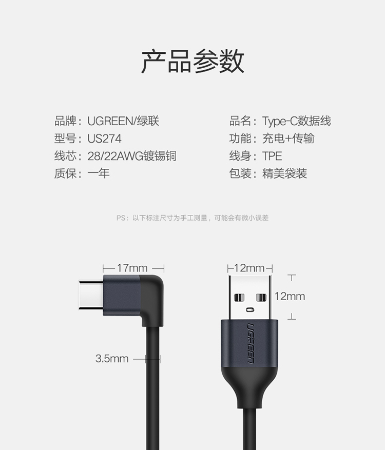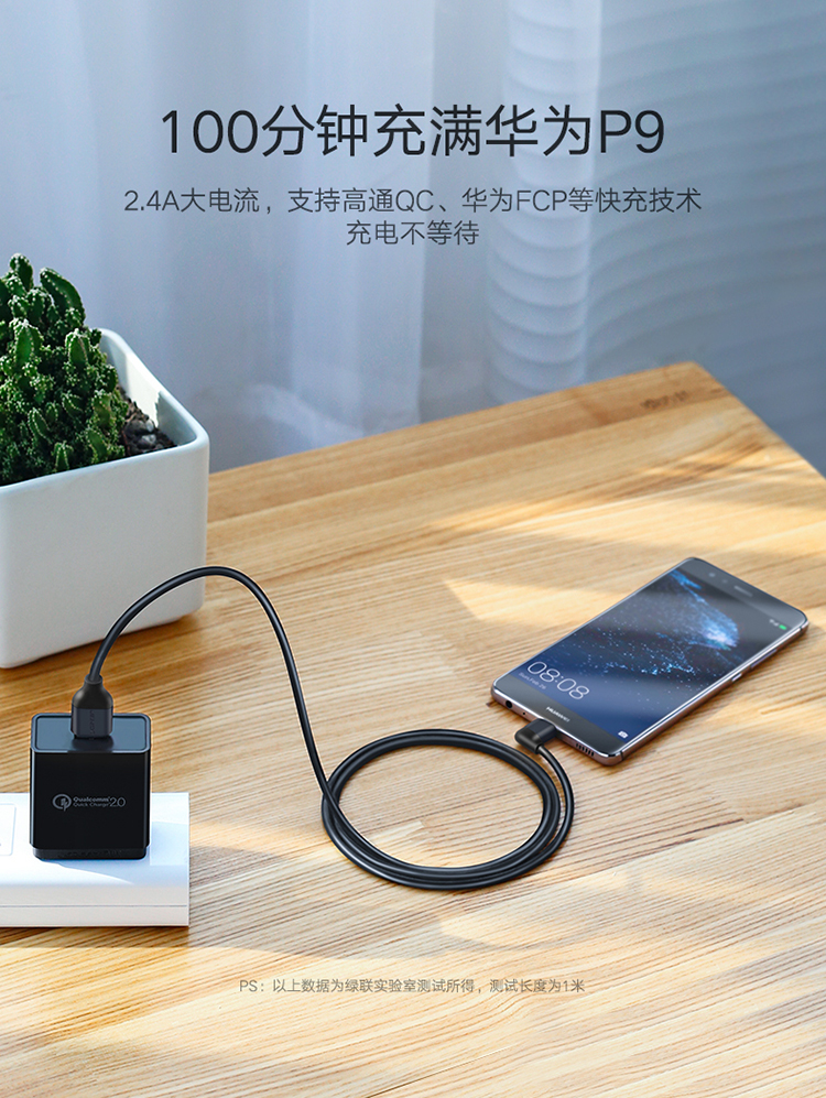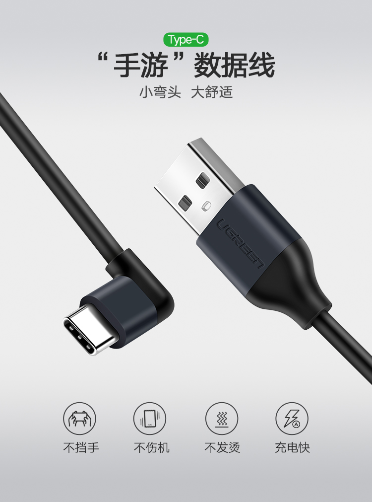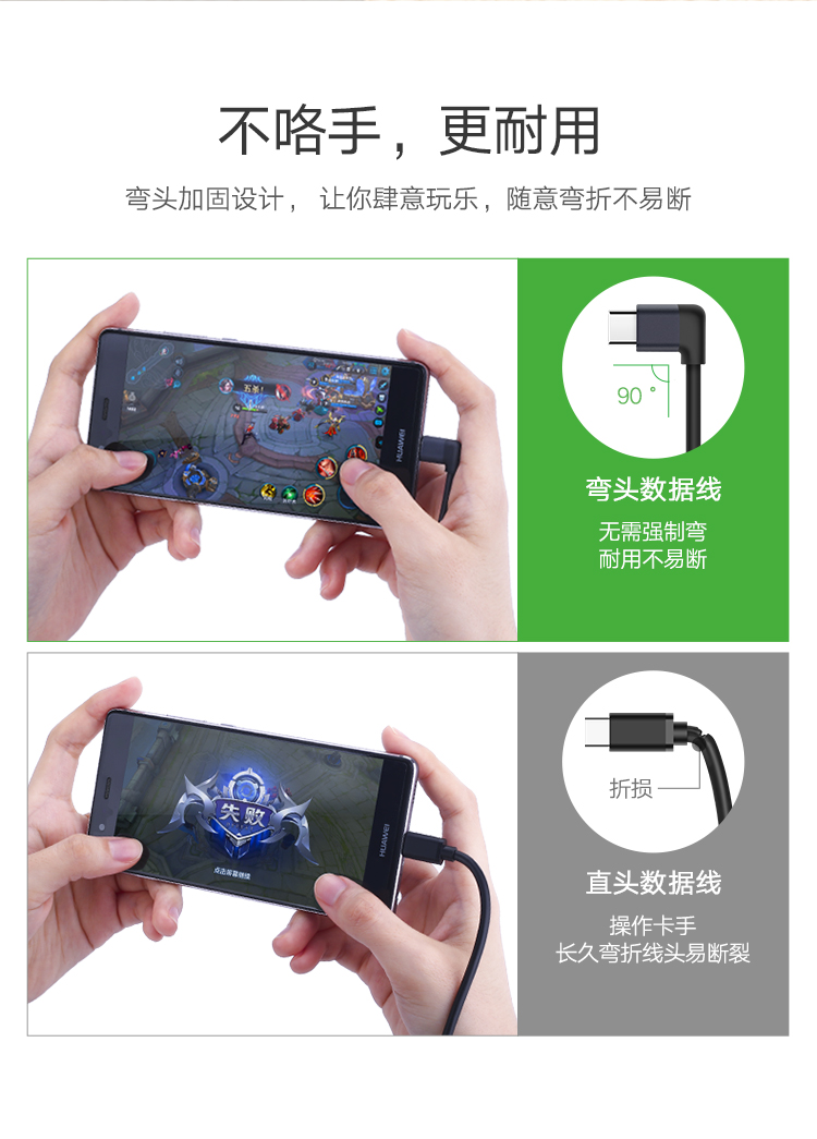商品名称:绿联 type-c数据线弯头小米5s五x6快充荣耀8v9华为p9p10乐视充电线 USB-c安卓口高速快充头魅族mx6通用手机线
