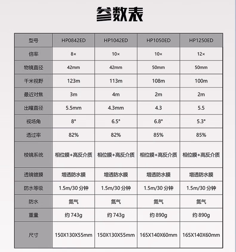 商品名称:HMaI HMAI哈迈高清高端户外专用专业双筒双目望远镜 HP0842ED