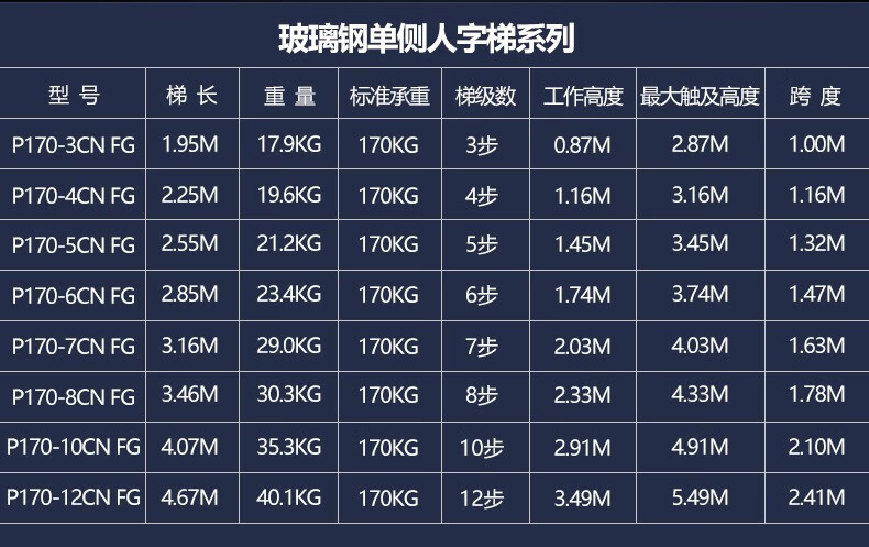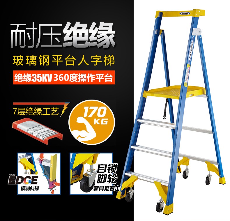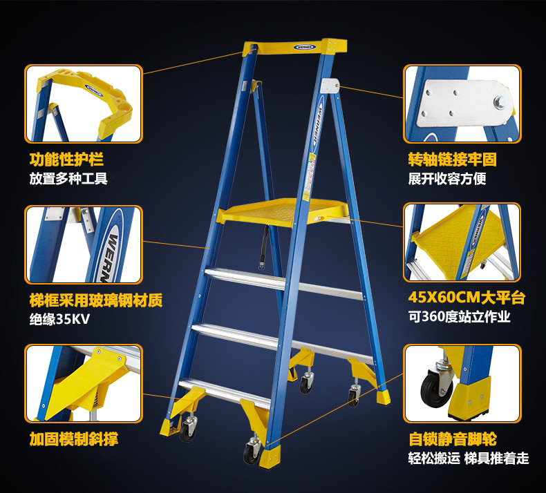 商品名称:稳耐3步玻璃钢工作站 平台高度0.87米 型号P170-3CN FG 承重170kg 单位:把