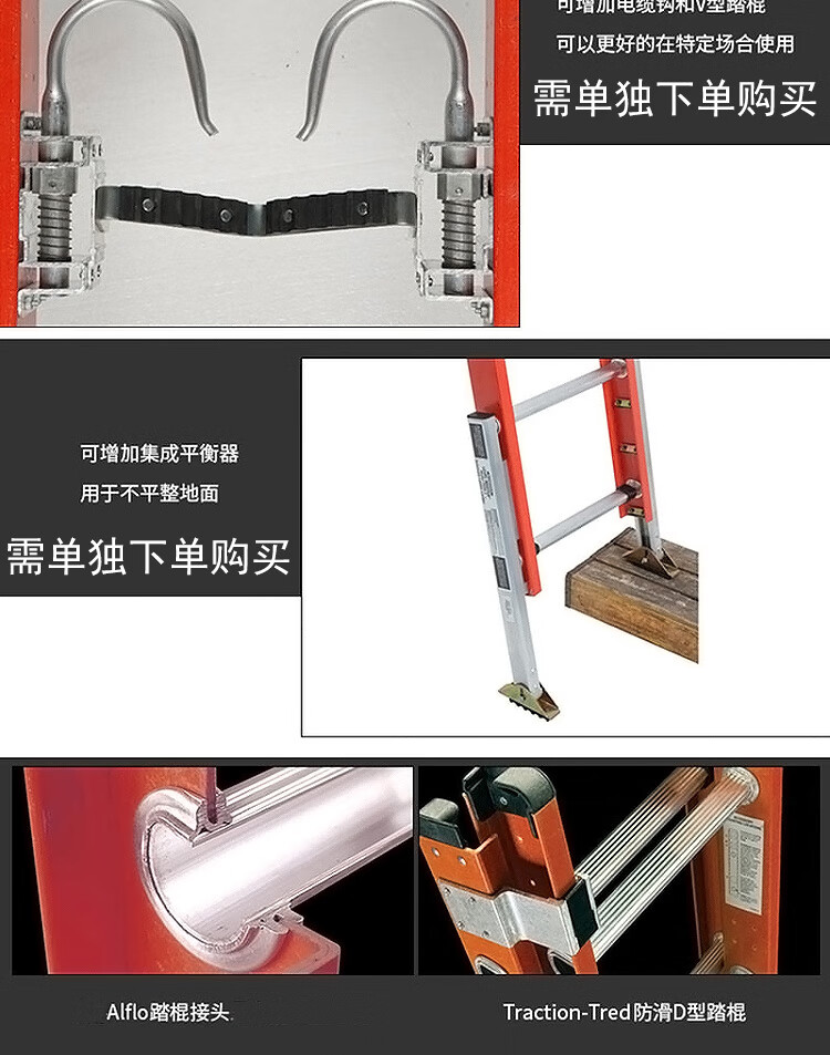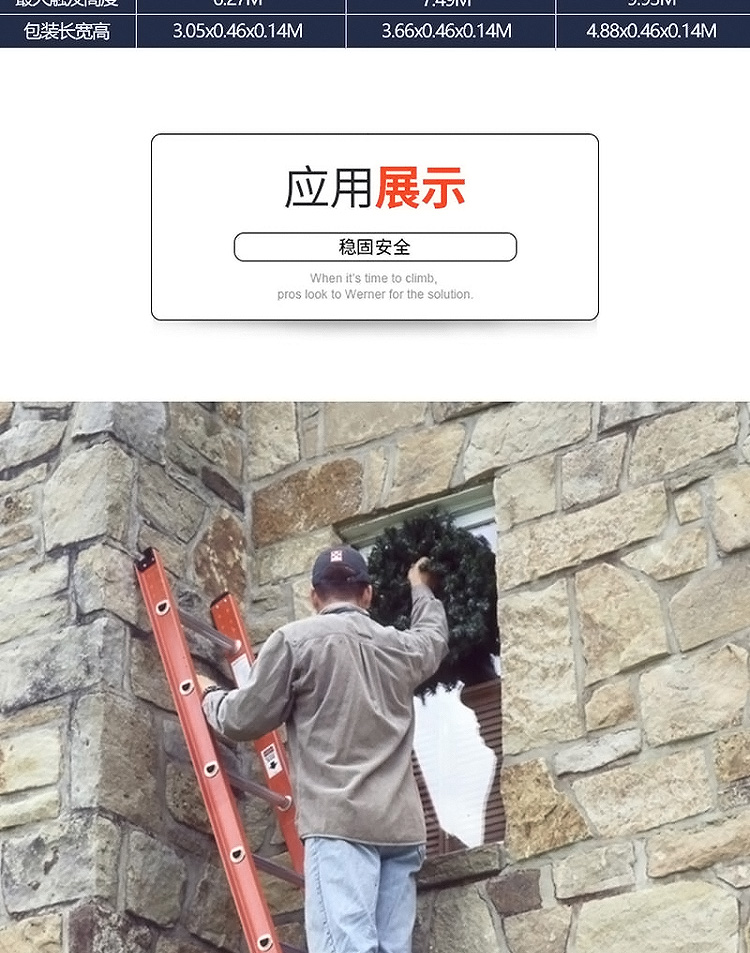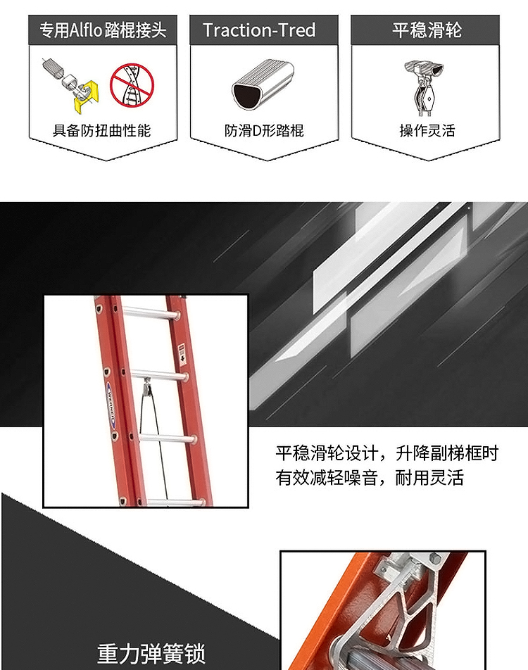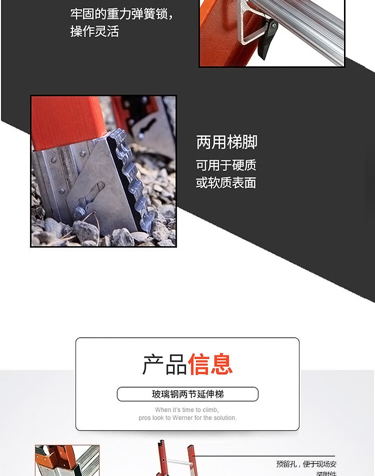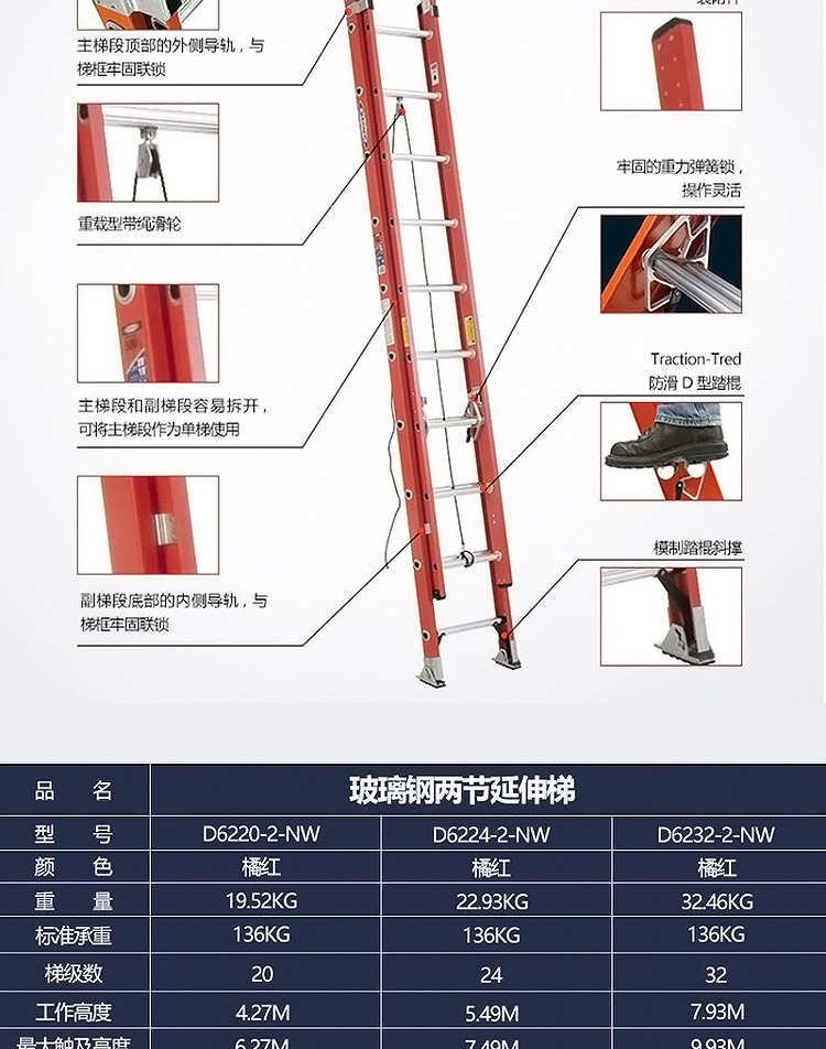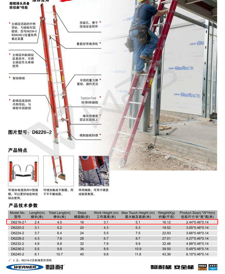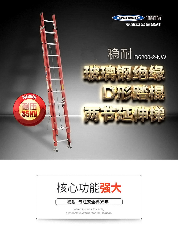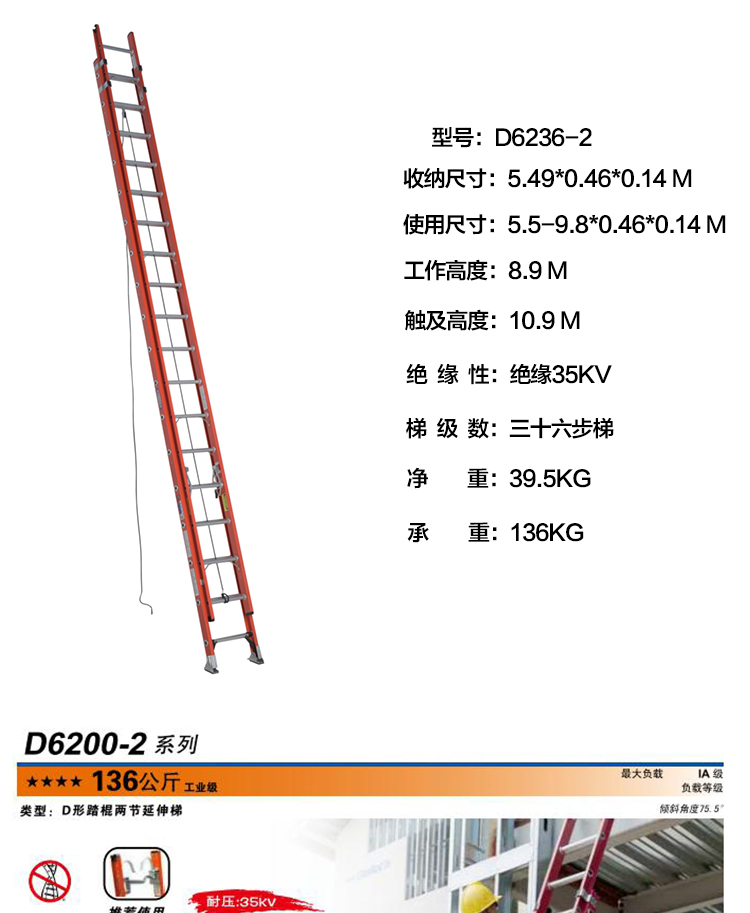 商品名称:稳耐36步玻璃钢绝缘两节延伸梯 伸长9.75m 型号D6236-2 承重136kg