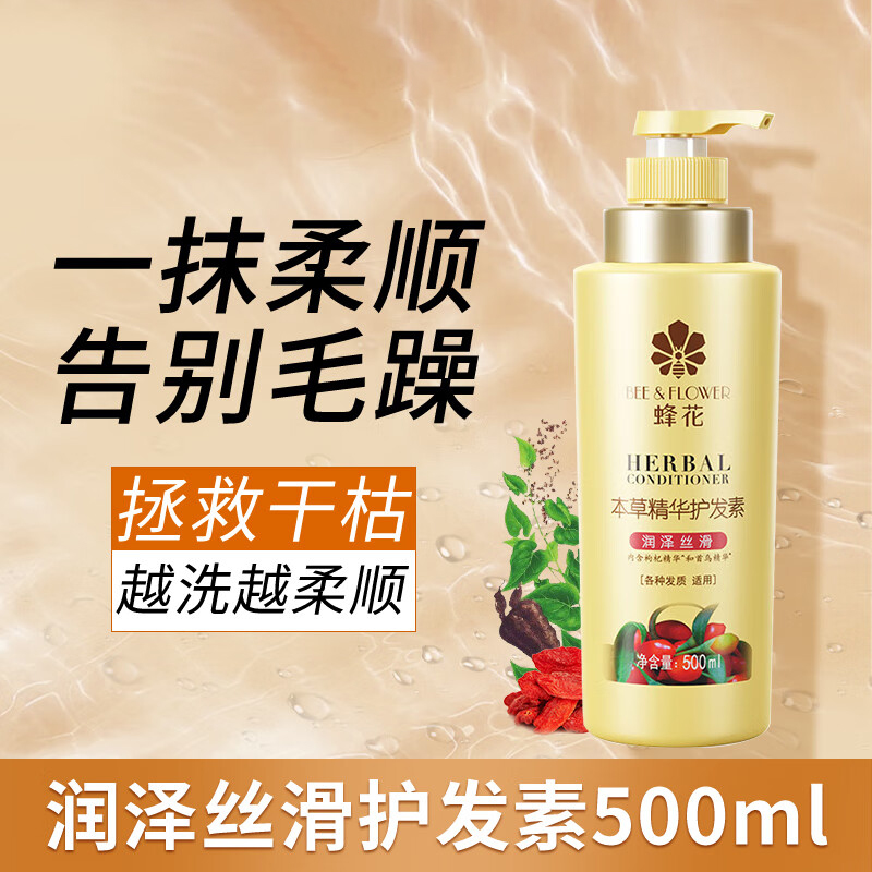 商品名称:蜂花本草精华护发素女男营养滋润修护干枯毛躁持久留香染烫修护洗头膏 润泽丝滑护发素500ml 单位:瓶