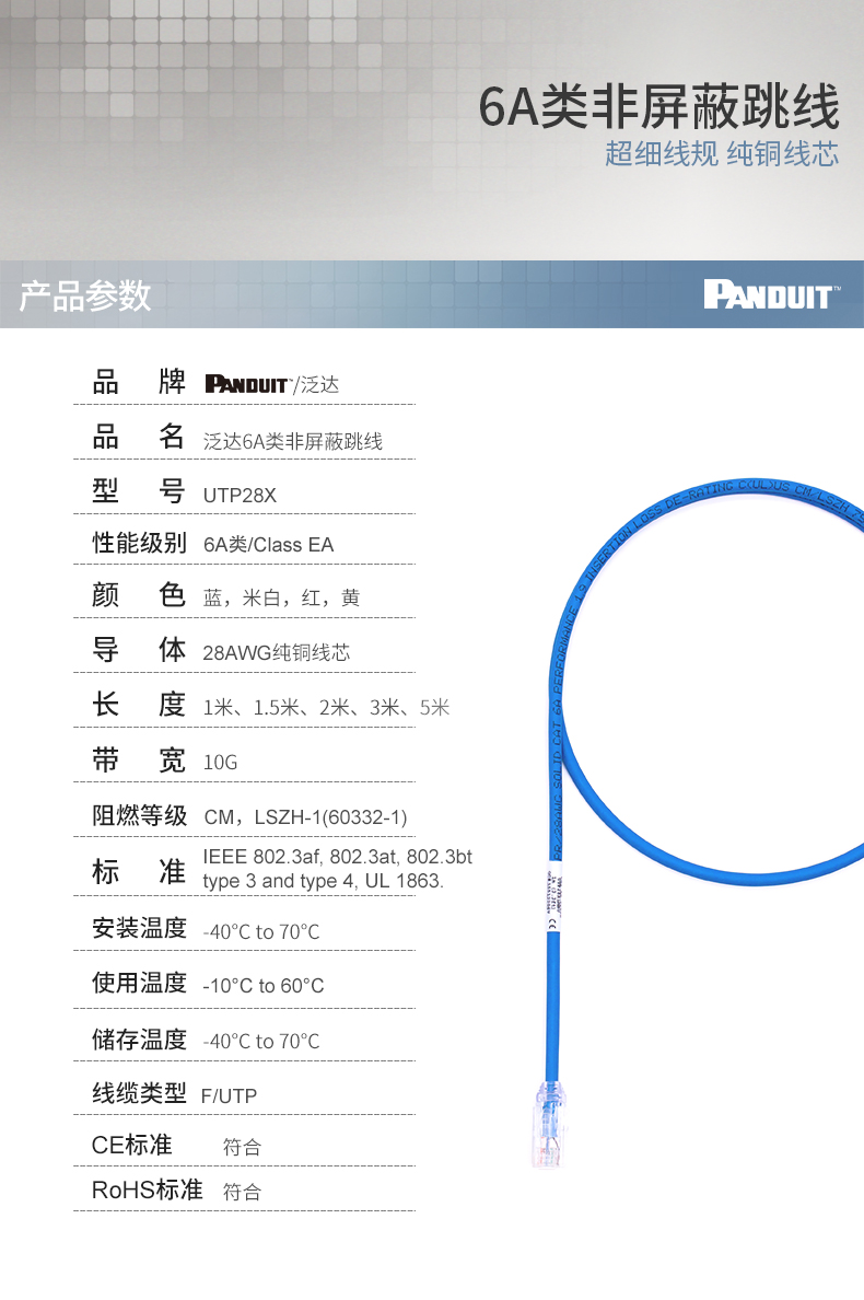 商品名称:Panduit/泛达 超六类网络跳线非屏蔽家用电脑连接线带水晶头UTP28X