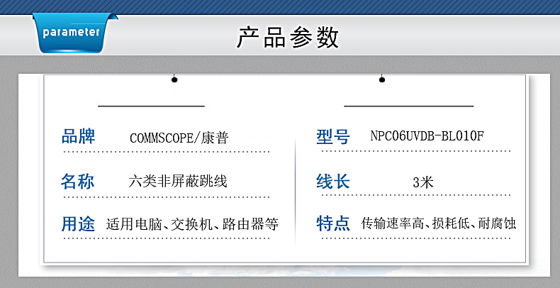 商品名称:安普 8八芯 四对 网线 六类非屏蔽3米跳线可替代安普 1-1859247-0