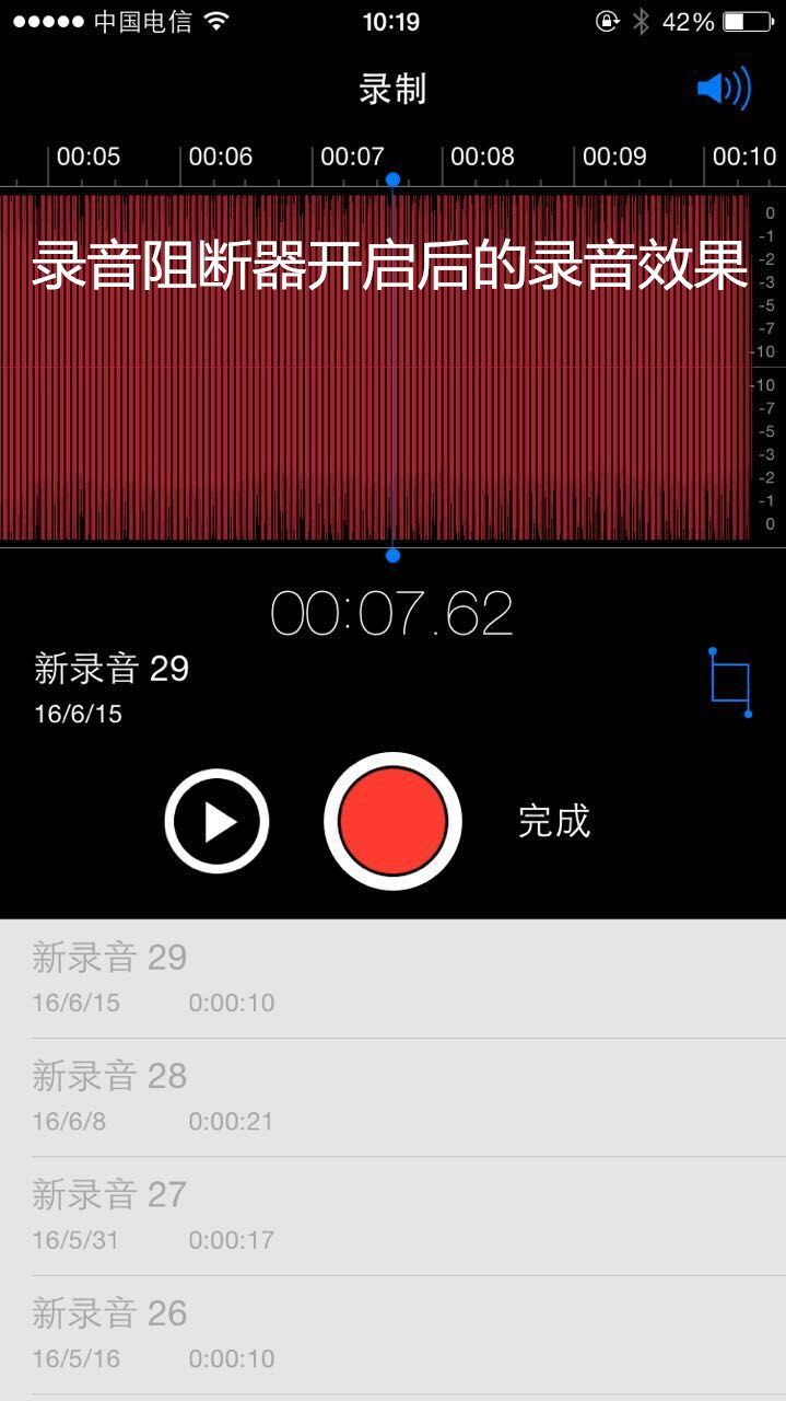 业内首次采用声学干扰方式,有别于传统的电磁干扰方式,对人体无危害。在达到录音截断效果的同时对使用者不产生任何副作用。