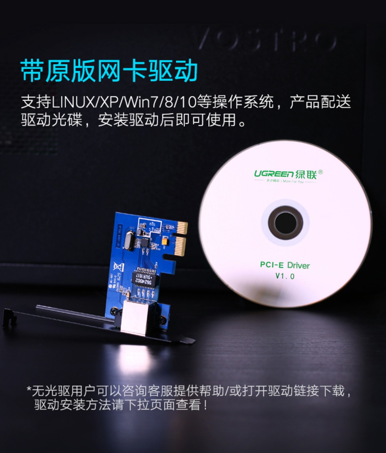 绿联 千兆网卡台式机有线电脑内置1000M高速PCI-E转usb3.0扩展卡服务器服务器网卡rj45网线扩展卡分线器