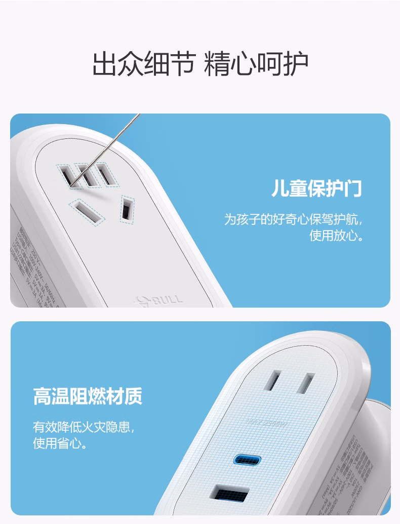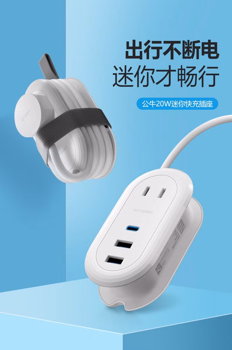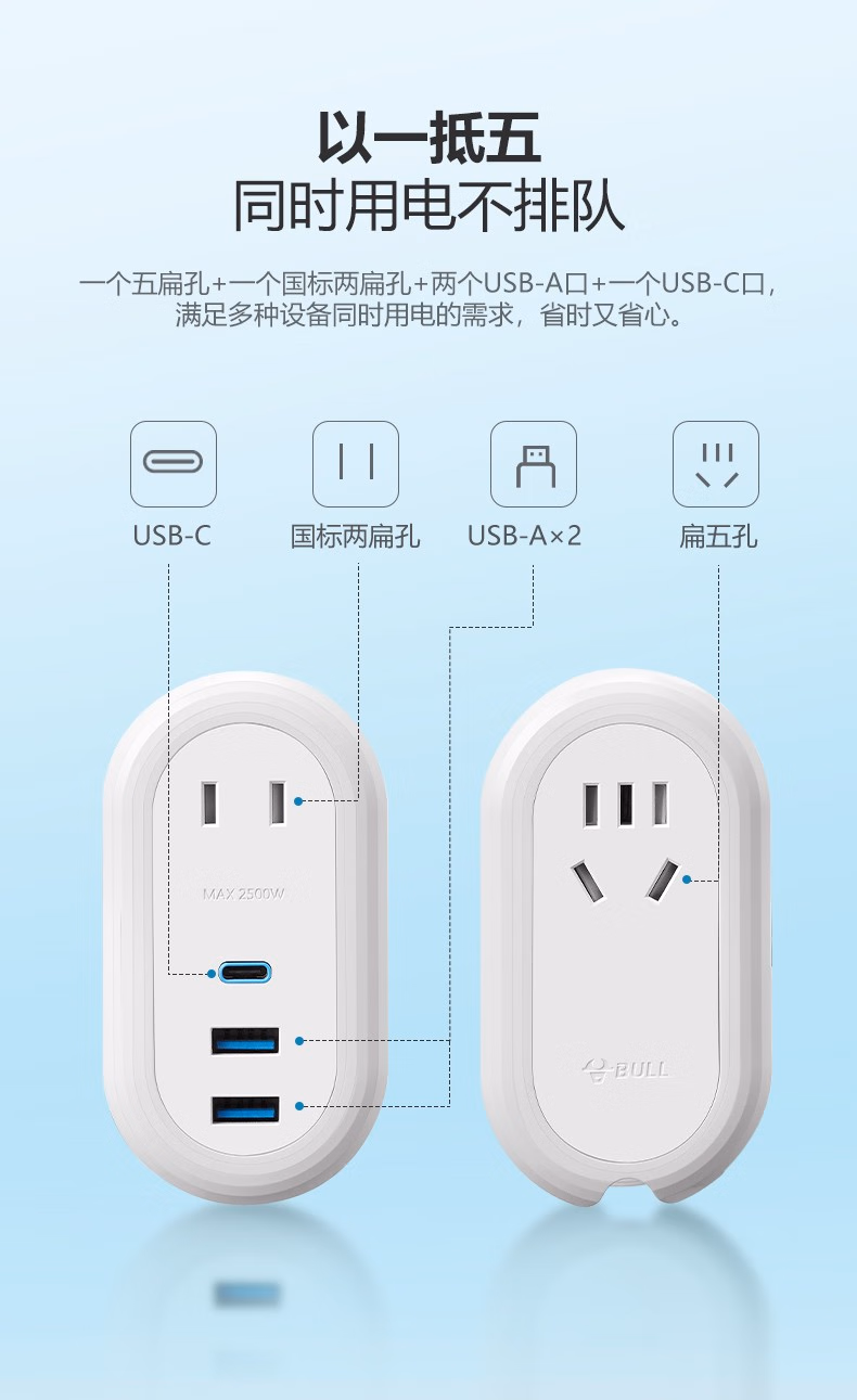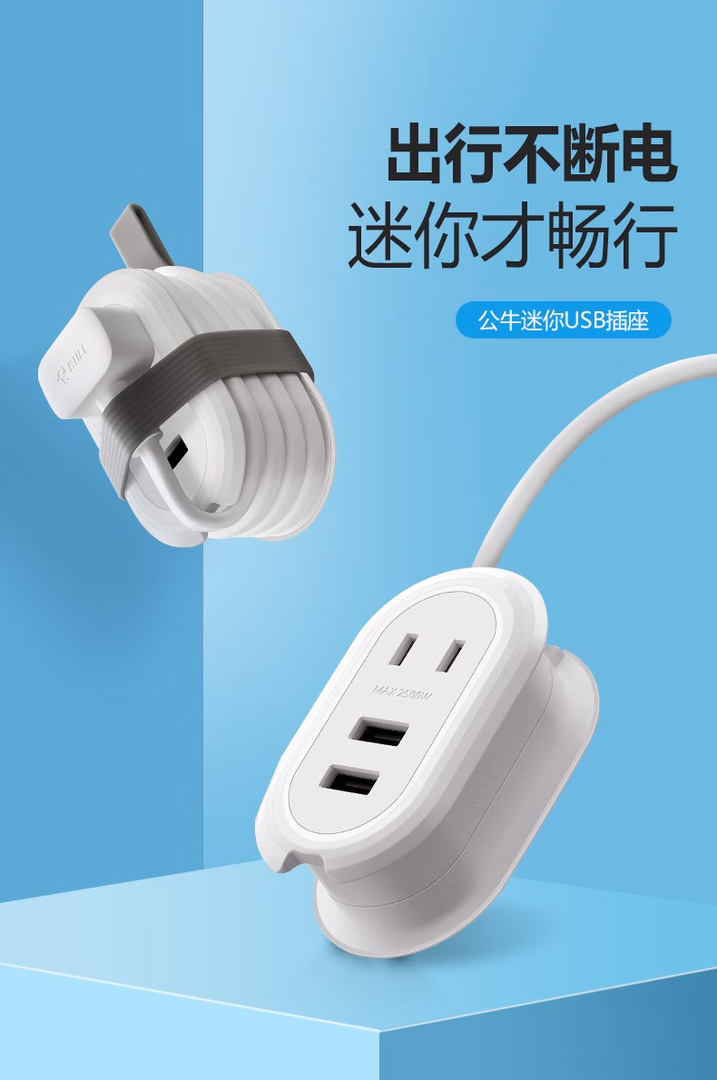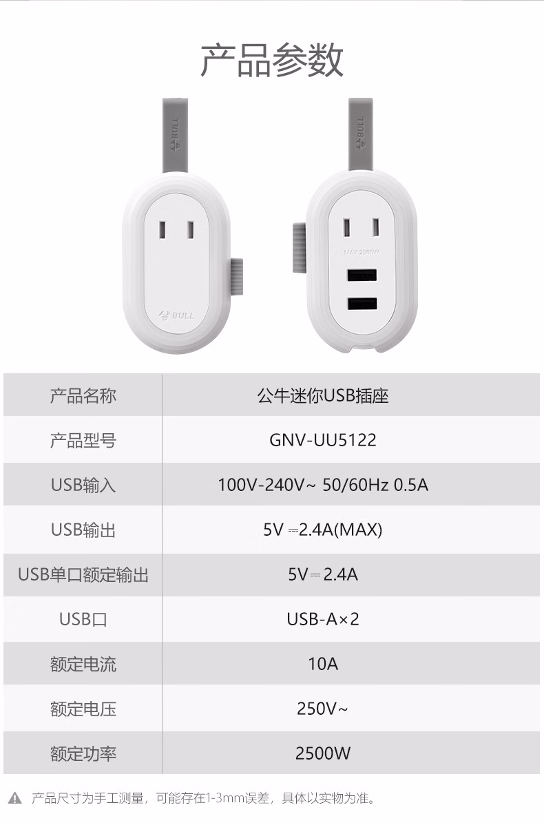 商品名称:公牛(BULL) 插座/插排/排插/出行便携插座/ USB差旅插座UU5122(2脚插头)