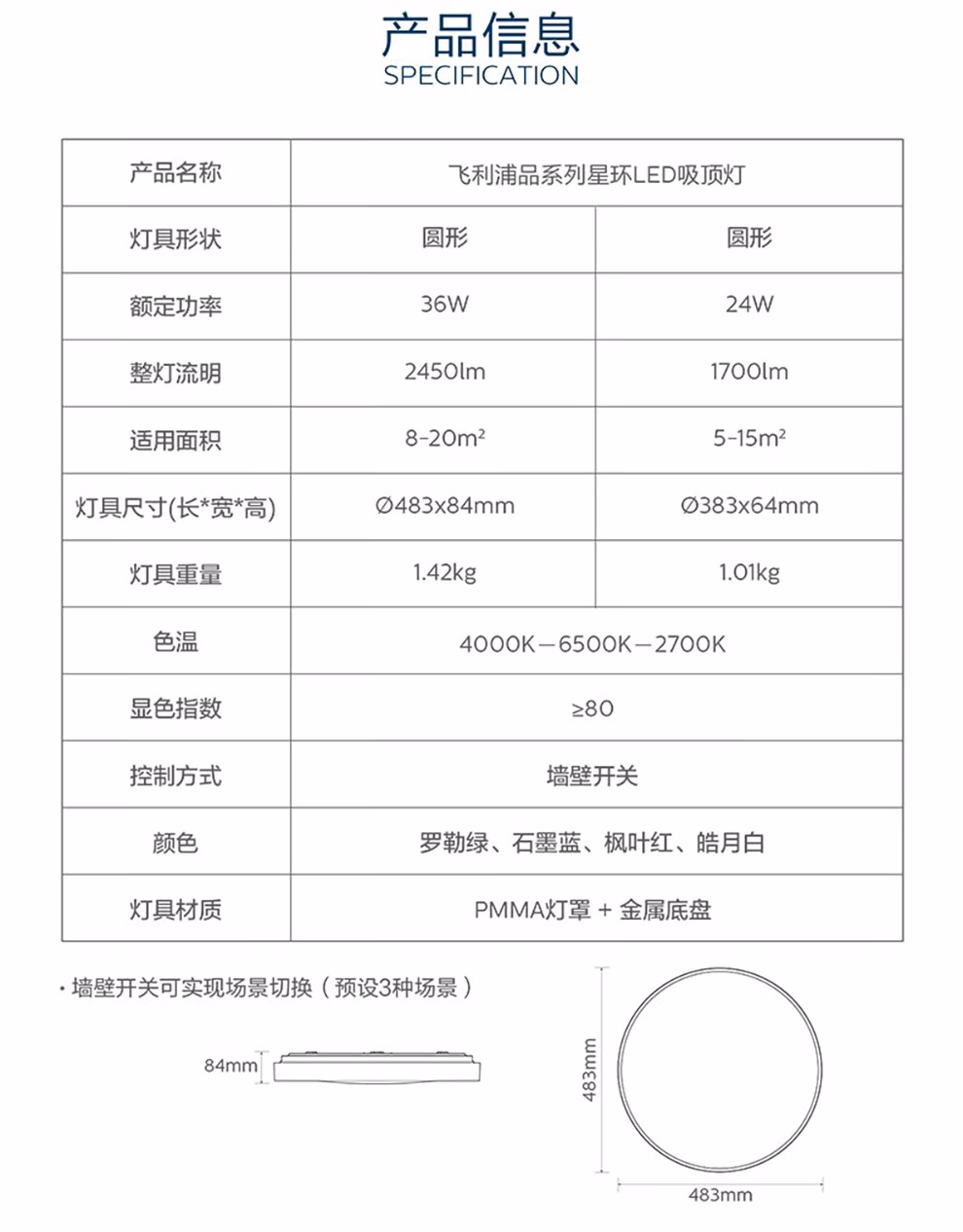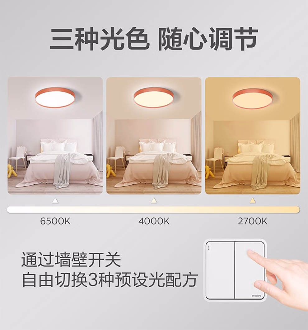 商品名称:飞利浦(PHILIPS) 飞利浦照明卧室吸顶灯超薄书房客厅灯圆形银色可调色温餐厅灯现代简约三色调光 银色36W-三色可调色温 单位:个