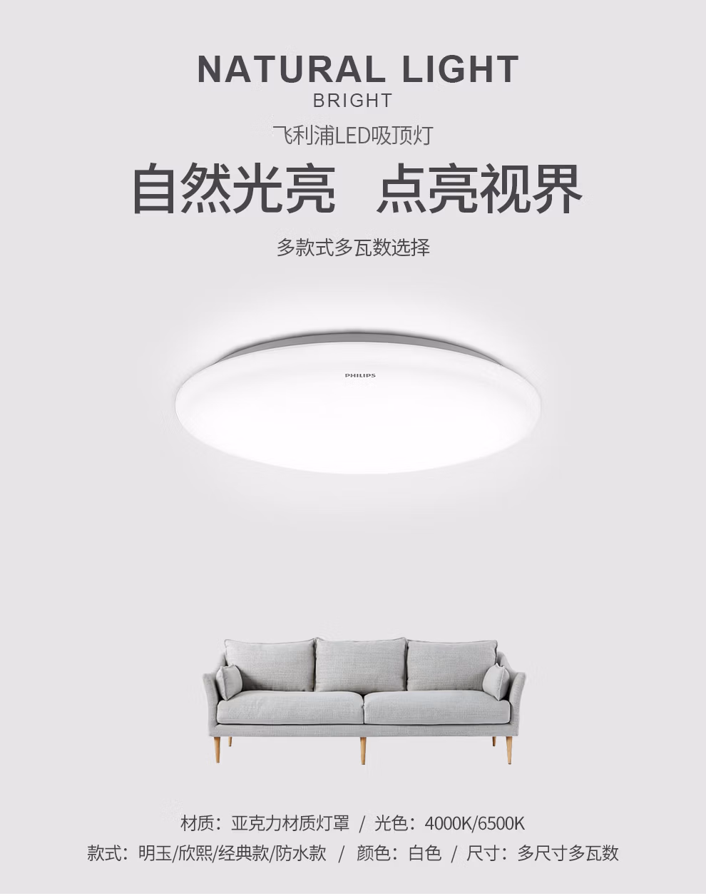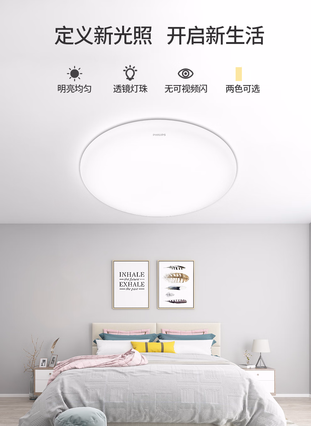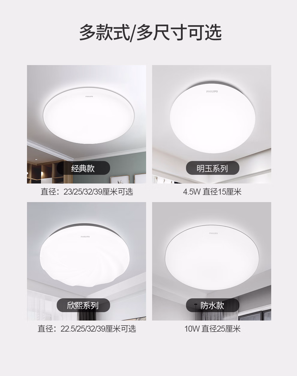 商品名称:飞利浦照明led吸顶灯 卧室阳台厨房现代简约灯具餐厅灯圆形过道走廊房间客厅卫生间厨房工程灯书房儿童房 明玉吸顶灯4.5W 6500K-直径16厘米
