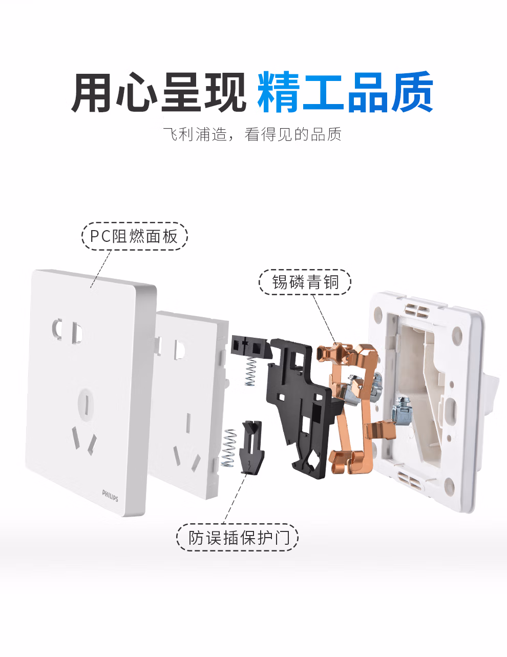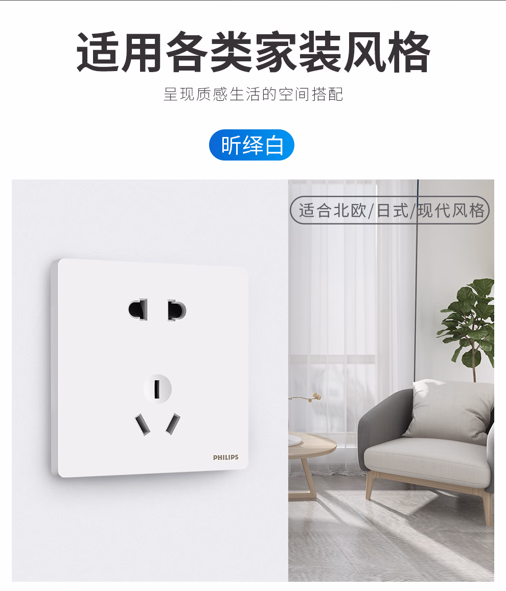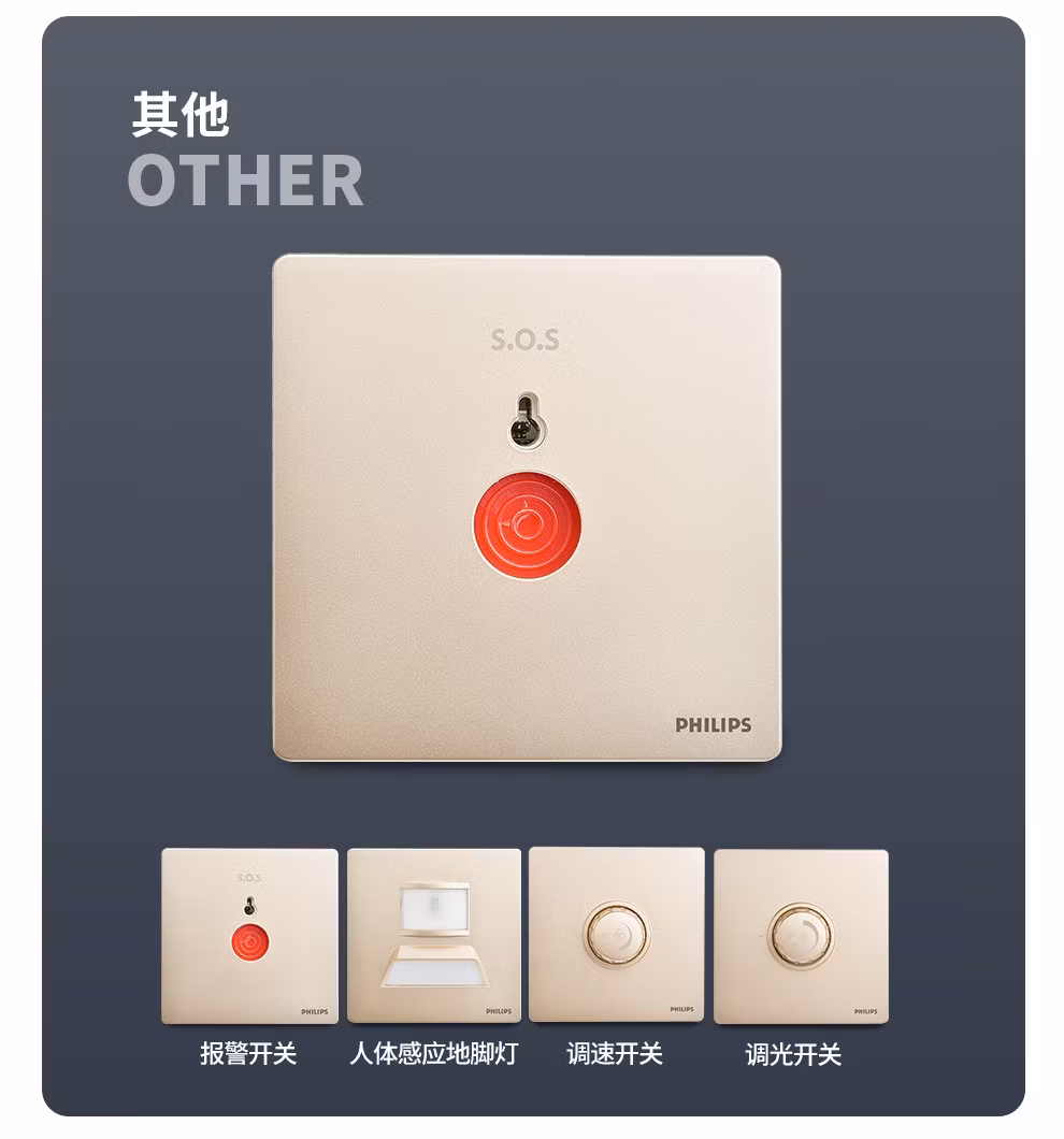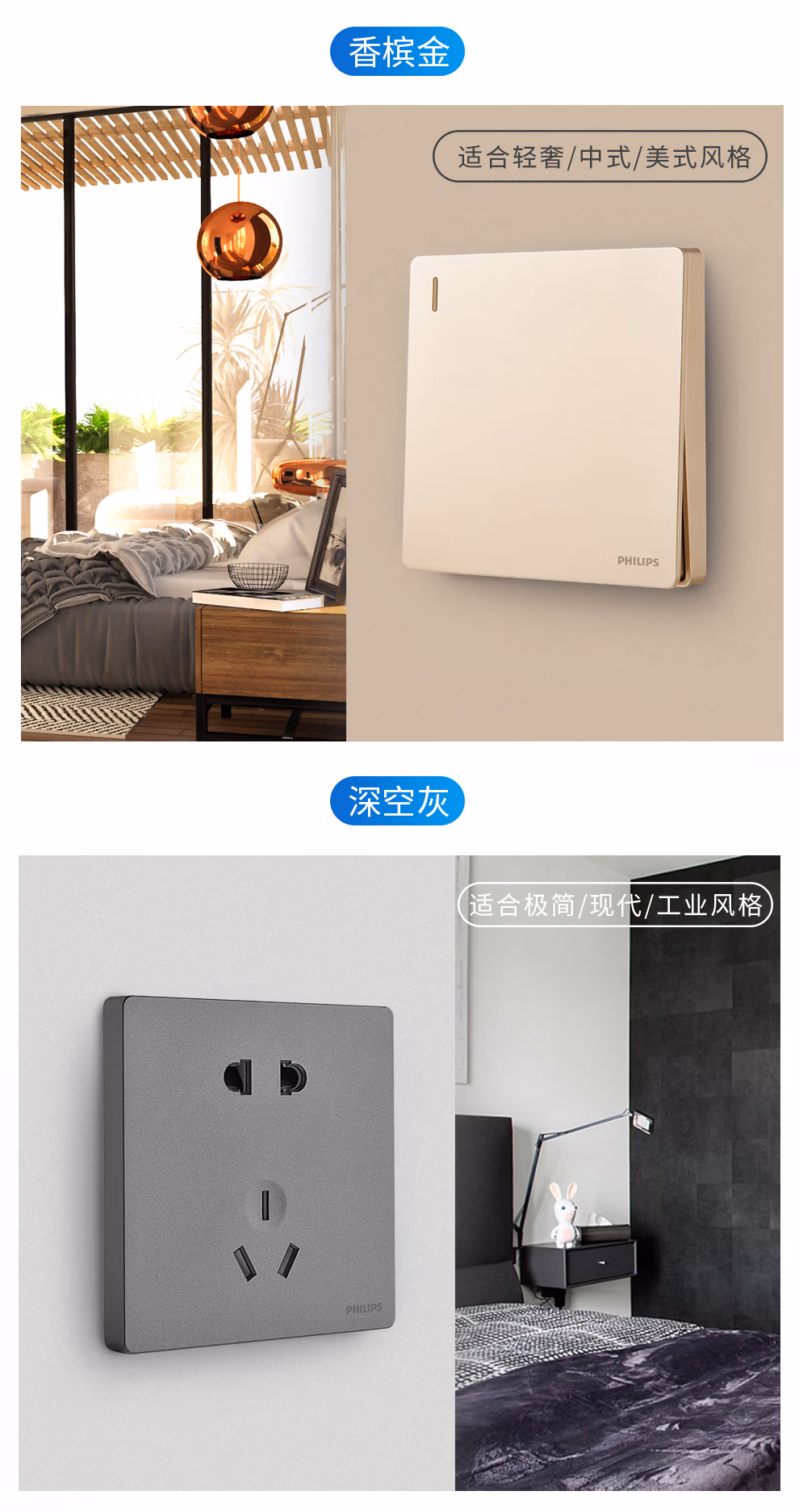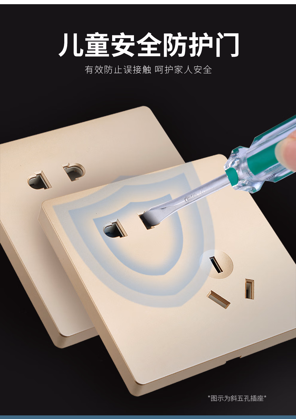 商品名称:飞利浦(PHILIPS) 开关插座面板昕绎香槟金色86型暗装家用墙壁五孔插座带一开开关 五孔插座(10A)10只