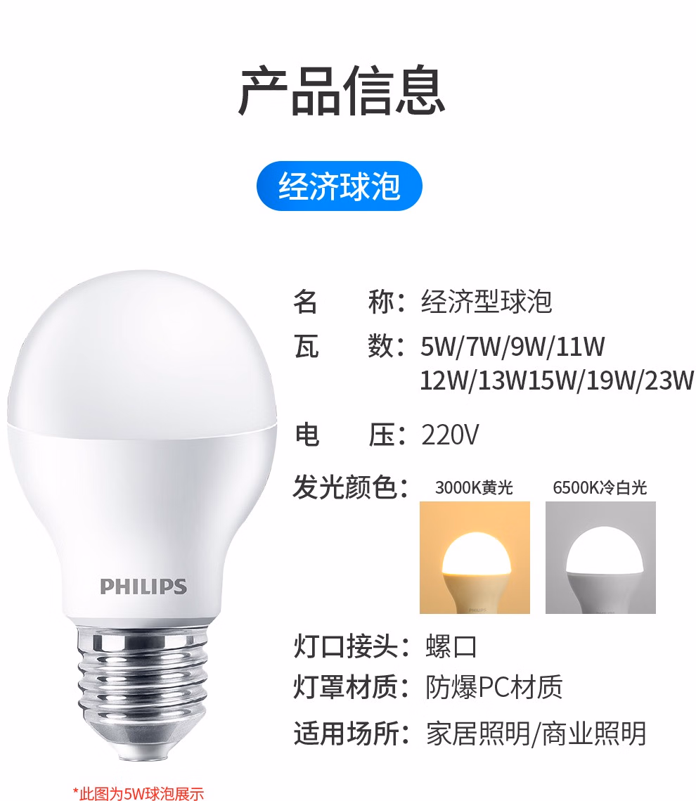 商品名称:飞利浦照明(PHILIPS)LED灯泡6.5w节能超亮小球泡家用客厅卧室吊灯光源灯饰E14螺口电灯泡 6.5W-6500KE14螺口 单位:个 5个起订