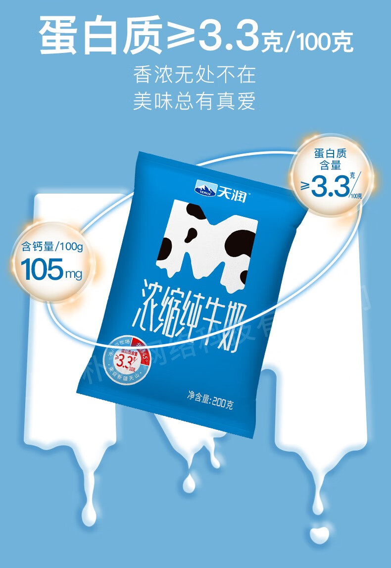 天润(terun)新疆天润浓缩纯牛奶M枕 常温早餐奶全脂牛奶袋装整箱 200g*12袋 单位:箱