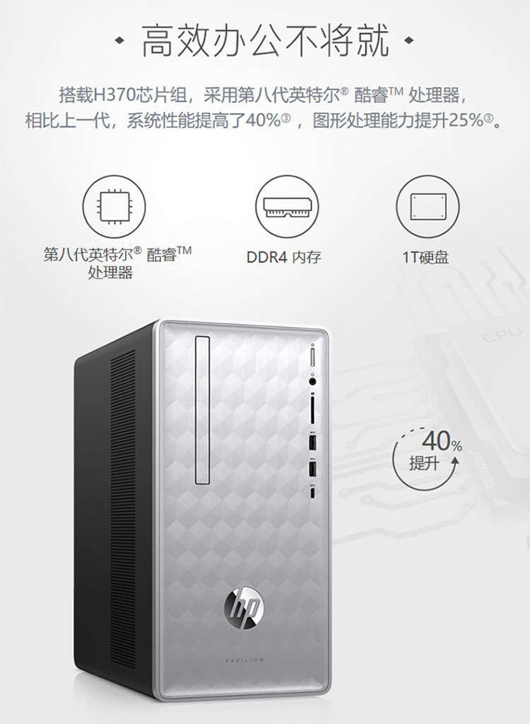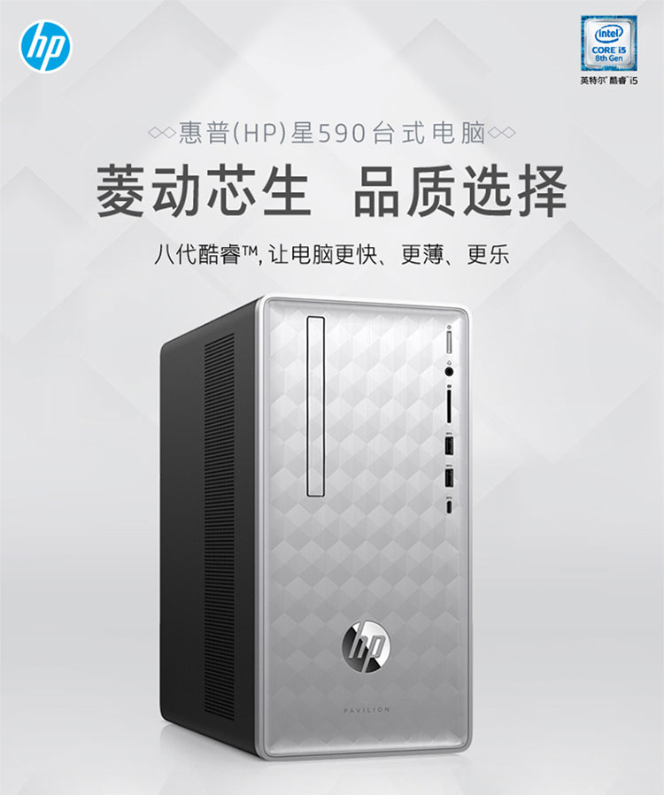 商品名称:惠普/HP 星系列 家用商用台式电脑主机(i5-8400 8G 1TB 2G独显 Win10三年上门)银色 590-p051