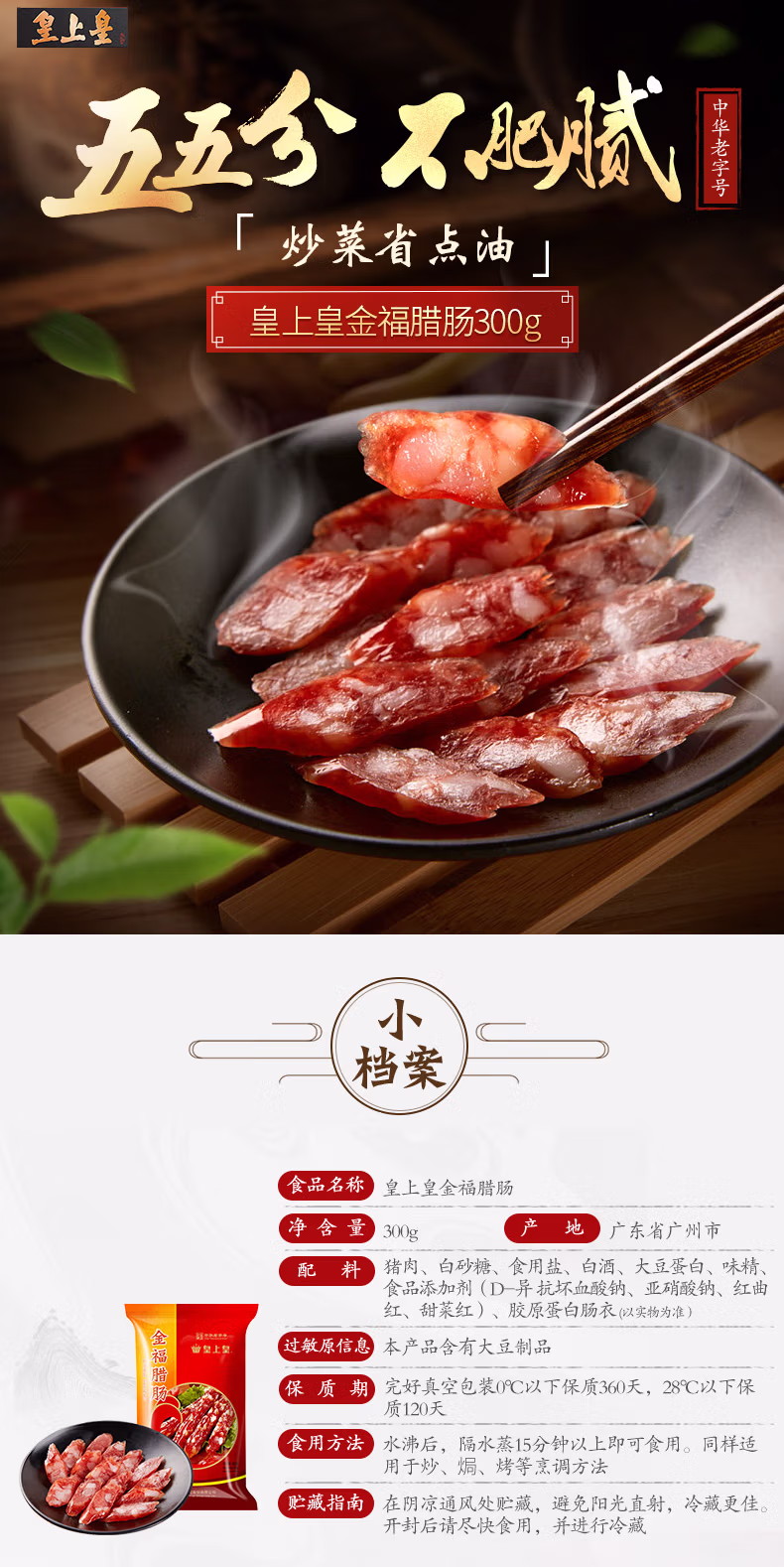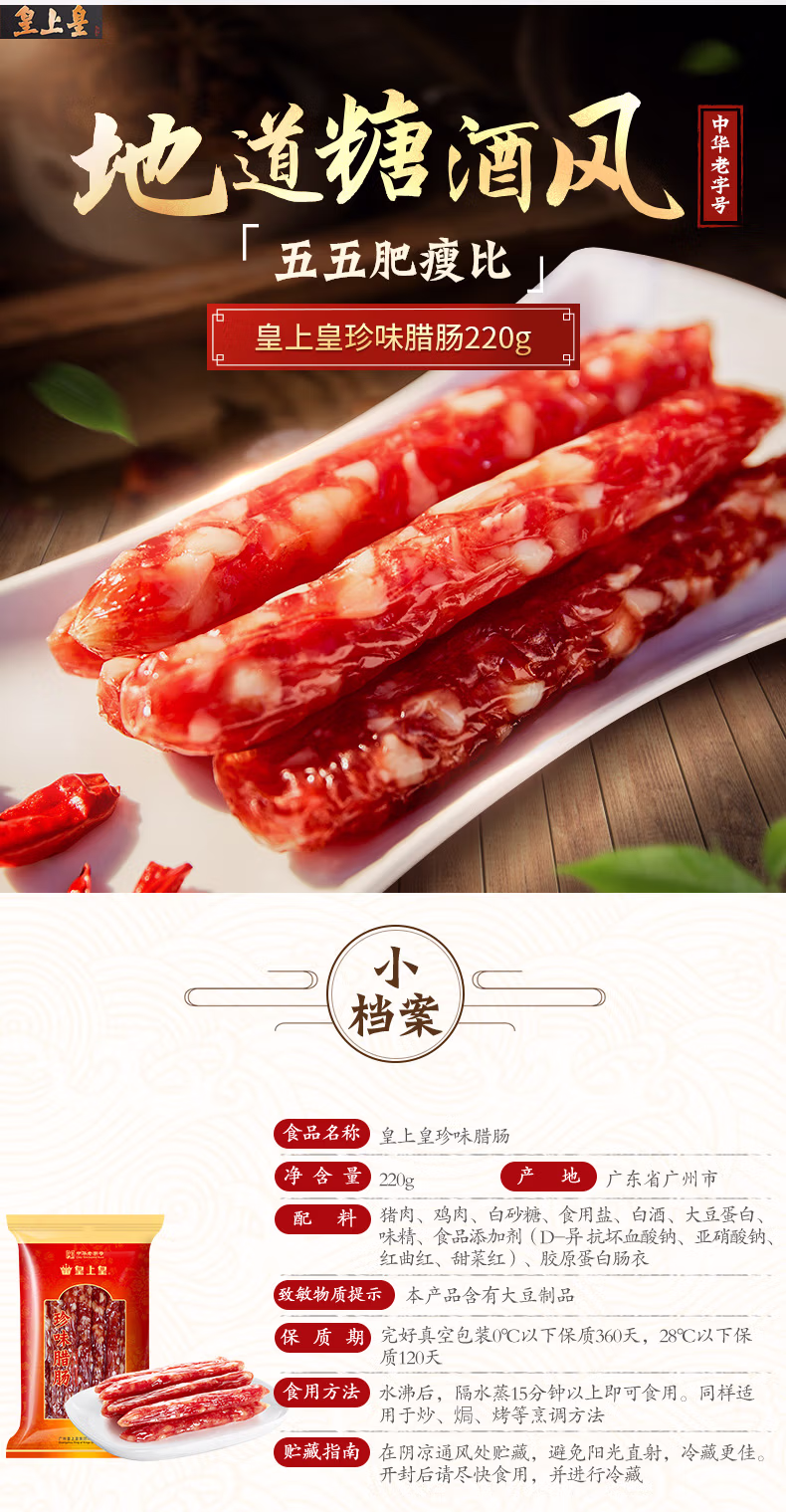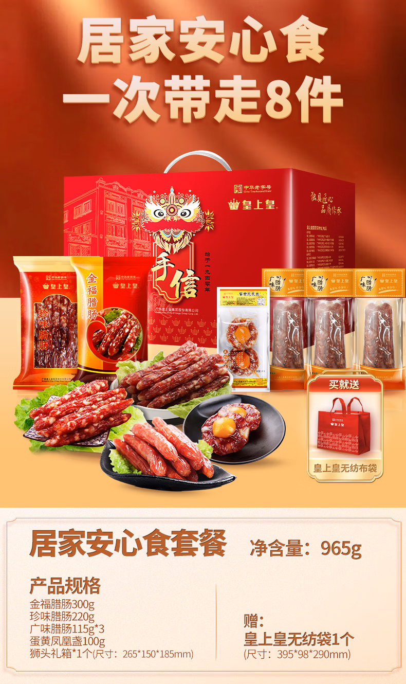 商品名称:皇上皇居家安心食手信礼盒965g 腊味广式腊肠蛋盏团购送礼特产年货